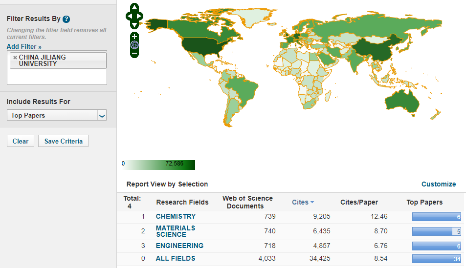 此外,我校在进入ESI全球前1%的5957个研究机构中排名第2460名(千分位4.13),工程学学科在进入ESI全球前1%的1446个研究机构中排名第920位(千分位6.36),化学学科在进入ESI全球前1%的1231个研究机构中排名第1124名(千分位是9.13),共产出34篇TOP论文,其中高被引论文34篇。