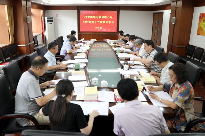 9月6日下午,校党委理论学习中心组举行2019年第十二次集体学习,专题学习习近平在中央党校(国家行政学院)中青年干部培训班开班上的重要讲话精神、近期中共中央政治局会议精神和《中国共产党问责条例》《中国共产党宣传工作条例》《关于深化新时代学校思想政治理论课改革创新的若干意见》等文件精神。校党政领导班子成员出席会议,党办校办、宣传部、纪检监察室、研工部、学工部、工会、团委等部门负责人参加会议。