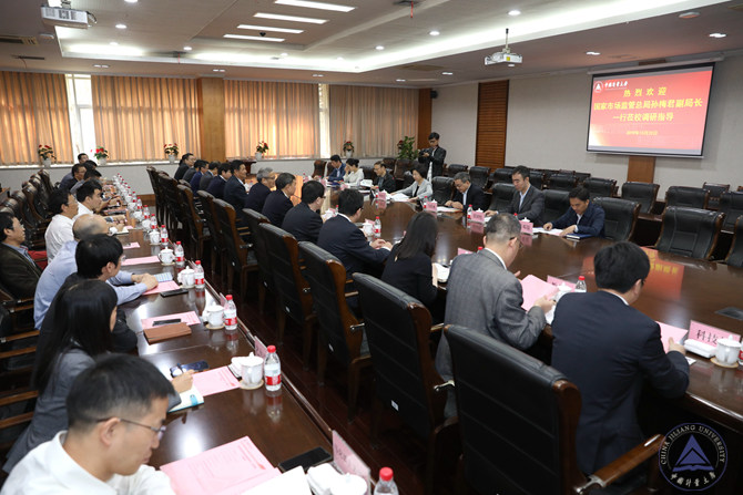 10月20日上午,国家市场监督管理总局副局长、党组成员孙梅君来我校调研考察,总局人事司司长方跃林,浙江省市场监督管理局党委委员、副局长卢永福,浙江省教育厅党委委员、副厅长于永明,总局人事司处长张国悦,浙江省教育厅高教处处长吕华 、副处长蓝邓骏等陪同调研。
