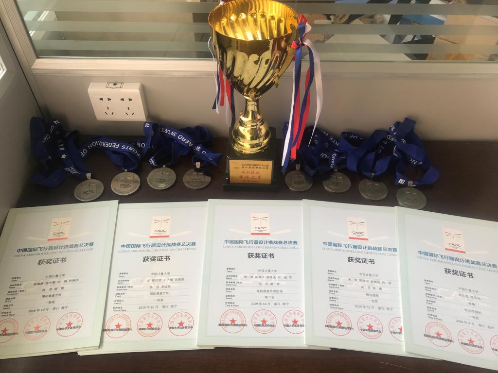 中国国际飞行器设计挑战赛(CADC),与美国举办的世界大学生航空设计大赛、欧洲大学生载重飞机设计大赛并列成为世界高校科研类飞行器设计赛三大赛事。该赛事设8个验证飞行比赛项目和科技创新评比项目,其中每项赛事仅取前三甲颁发团体奖牌。我校航模队39名队员共参加了对地侦查与打击、太阳能飞机、直升机模拟搜救、限距载重空投、垂直起降载运、电动滑翔机共6个验证飞行项目的比赛。获奖一些列好成绩:对地侦查与打击项目获得三等奖1项,太阳能飞机项目获三等奖1项,直升机模拟搜救项目获得一等奖1项、二等奖1项(单项团体亚军),限距载重空投项目获得一等奖2项(单项团体第四),垂直起降载运项目获得二等奖1项、三等奖1项,电动滑翔机项目获得一等奖1项、三等奖1项。值得一提的是,继2018年模拟搜救项目团体季军后,校航模队今年获得了该项目的团体亚军。