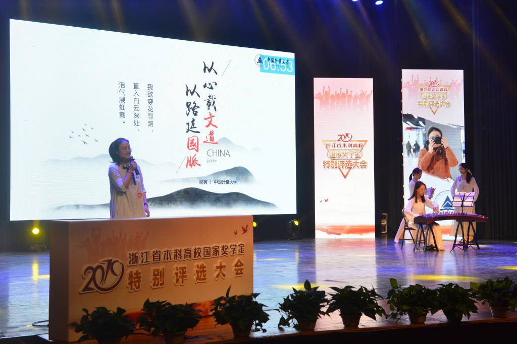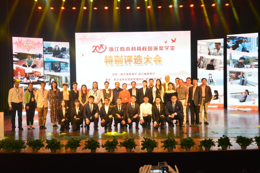 国家奖学金是中央政府出资设立,用于奖励高校全日制本专科学生中特别优秀的学生,是目前各类学生奖学金荣誉中级别最高的奖项。浙江省从2009年开始率先探索组织国家奖学金特别评选活动,每年从中央下拨的本专科国家奖学金名额中专门预留省级特别推荐名额,由全省高校推荐成绩优秀并在道德风尚、学术研究、学科竞赛、创新发明、社会实践、社会工作、体育竞赛、文艺比赛等某一方面表现特别突出学生,通过专家遴选进入特别评选大会,优中选优推选树立一批德智体美劳全面发展的优秀学生典型。2017年,我校量新学院王哲同学获得该荣誉。2019年,人文与外语学院郦寅同学代表学校再次获此荣誉。