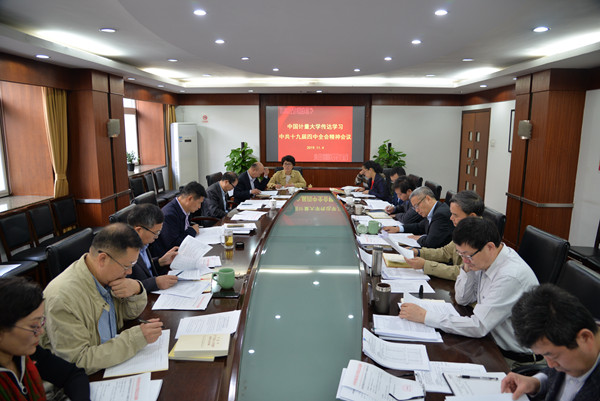 11月4日上午,校党委理论学习中心组举行2019年第十六次集体学习,传达学习党的十九届四中全会精神。党委书记张土乔主持会议并讲话。宋明顺、肖刚、程刚、俞晓平、王小华、金尚忠、王迪钊等校党政领导班子成员出席会议并发言。