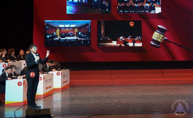 决赛在12所高校之间展开,现场气氛紧张热烈。我校参赛队员17法学2班赵栖栖、17汉语言2班石海彤、17生工1班王俊文稳扎稳打,认真思考,谨慎作答,以满分成绩通过了个人必答环节。