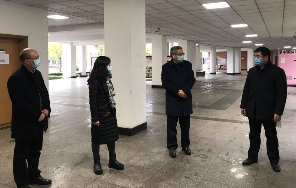 张土乔先后来到翔宇楼、环宇楼,实地察看教学楼各个出入口,面对疫情防控需要,要求相关部门务必要提前做好学生复课后的上下课出行路线规划设计工作,要尽量减少学生之间面对面的接触,同时在走访过程中也要求后勤部门要增加满足师生需求的后勤设施建设。