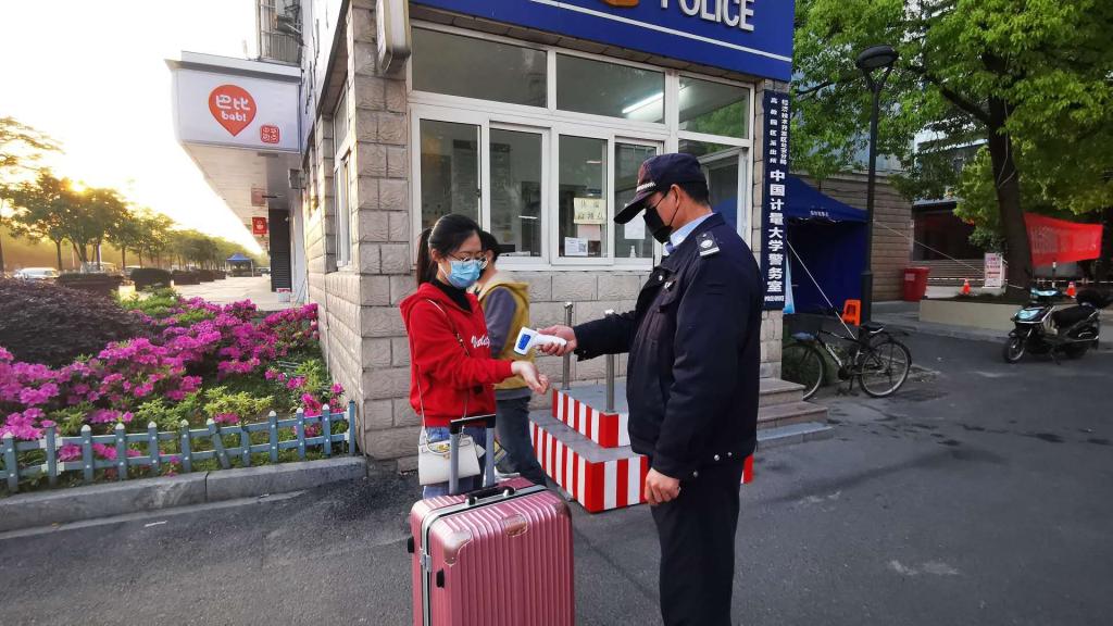 学校为同学们平安返校做了充分准备和悉心安排。学生下地铁站后,便可乘坐摆渡车抵达学校。在志愿者的引导下,来到所在学院报到点,按照“一查二测三核实四通过”流程进校。进入宿舍前,还需通过体温复测。