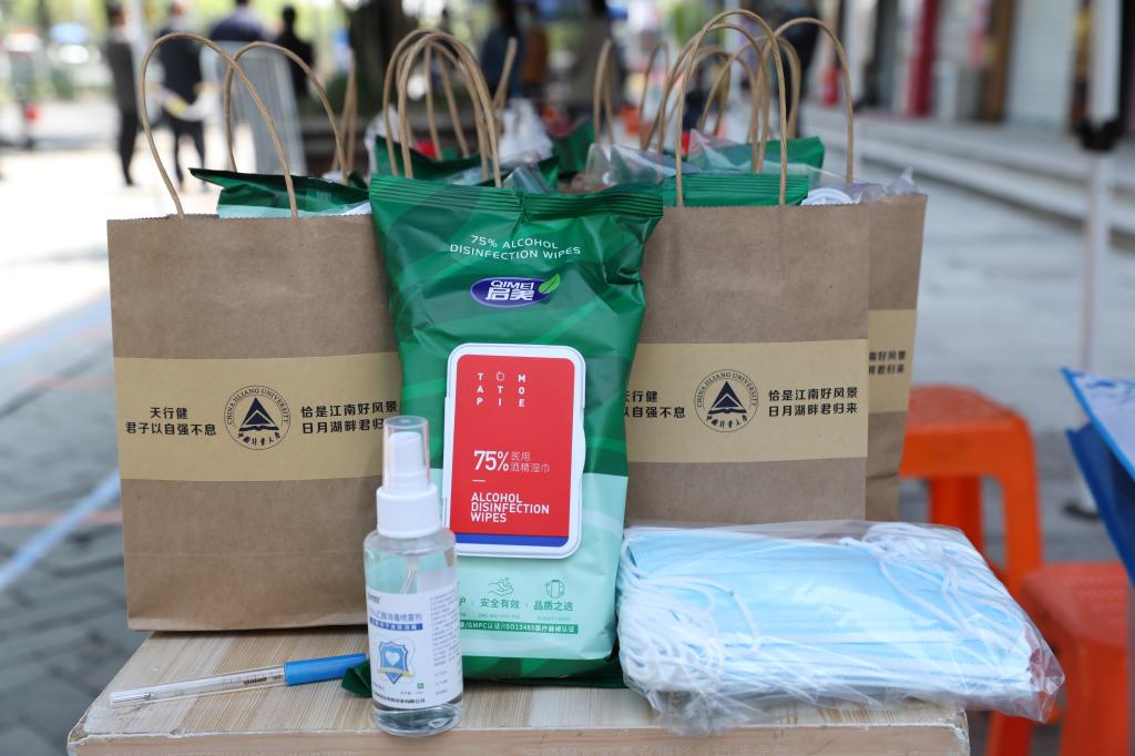 学校还为困难生准备了爱心健康包,内有口罩、体温计、75%乙醇消毒喷雾剂、75%医用酒精湿巾,供学生日常检测使用。这些健康包来自北京康斯特仪表科技股份有限公司总经理、84级校友何欣,广州高铁我院检测股份有限公司董事长陈国光,宁波前程人力资源有限公司董事长、01级校友朱利峰,杭州夏妙客电子商务有限公司创始人、07级校友李晨,10级校友滕雨佳等的捐赠,凝聚了校友们对学校的深情。