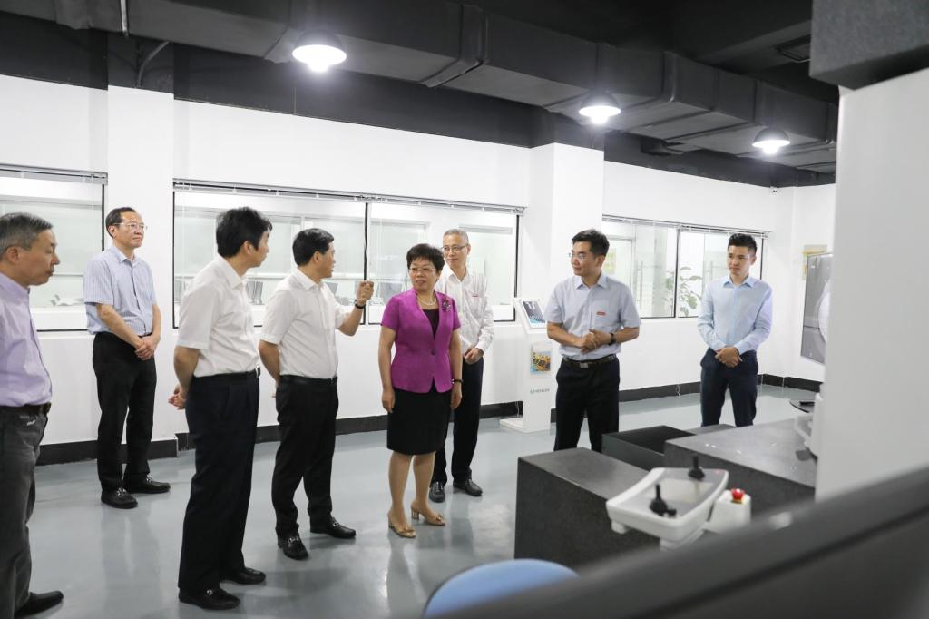 随后,陈奕君一行来到我校精密测量与智能制造工程研究院调研指导。占地面积1200平方米、仪器设备投入超过1亿元以上的精密测量与智能制造工程研究院是我校与海克斯康集团合作共建的集科研、教学和社会服务于一体的新型产教融合平台。研究院面向“工业4.0”,以质量为核心,围绕精密测量与智能制造,开展与产品设计、仿真验证和质量检测等方案的研发和技术服务。实验室内,技术设备正忙碌运转着,返校复课的师生们在岗位全心投入科研。陈奕君在工作人员的介绍下认真了解研究院的建院历史和先进成果。在一台国际最先进的三坐标测量系统设备面前,陈奕君详细了解该设备的生产商、装置、功能等情况后表示,高精尖设备对我国制造业现代化发展至关重要,高校要集中优势力量进行科研攻关,开发先进科研仪器设备,持之以恒解决关键核心技术“卡脖子”问题,为推动浙江省数字经济“一号工程”和经济高质量发展贡献力量。同时,要主动运用科研设备开展学生培养、社会服务等工作。