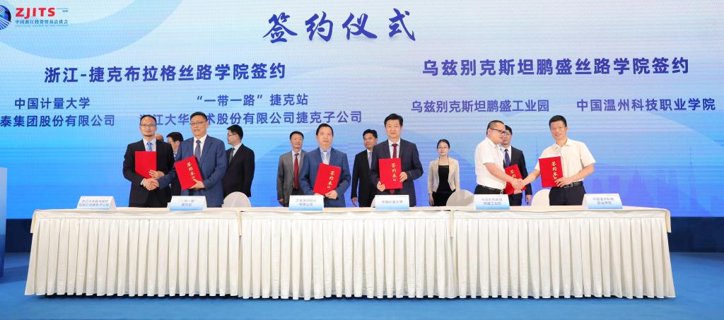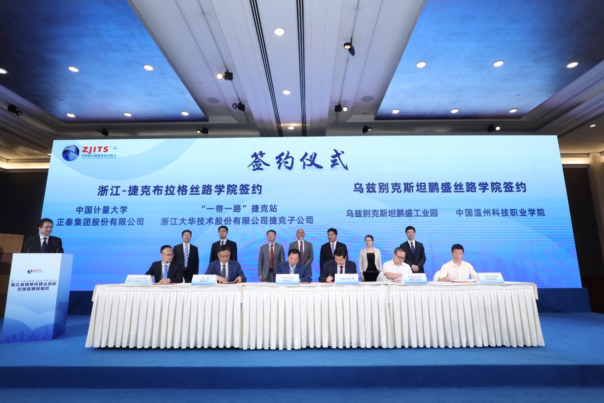 会上举行了我校与欧洲华捷发展有限公司(“一带一路”捷克站)、正泰集团股份有限公司、浙江大华技术股份有限公司捷克子公司共建“浙江-捷克布拉格丝路学院”签约仪式。宋明顺校长与浙江华捷投资发展有限公司(“一带一路“捷克站)董事长傅春晗,正泰集团股份有限公司行政与公共事务部副总经理、正泰大学堂副教务长廖毅,浙江大华技术股份有限公司公共事务部华东区域总监李道良签约。