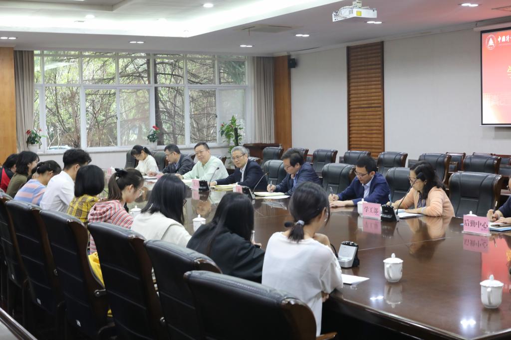 10月10日上午,学校在闻厅一楼会议室召开学生座谈会。校党委书记张土乔,党委副书记程刚,党委委员、研究生院院长张勇出席座谈会,党办校办、教务处、研究生院、学生处、团委和后勤中心等职能部门负责人,各学院本科生、研究生代表16人参加了座谈会。座谈会由程刚主持。
