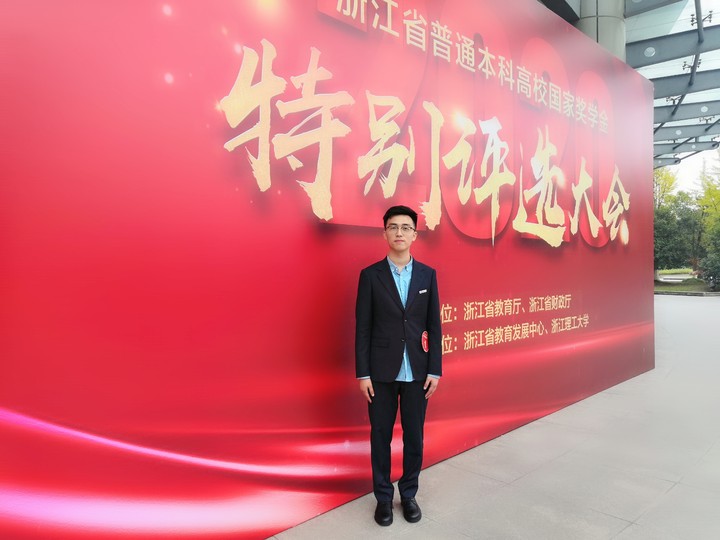 国家奖学金是中央政府出资设立,用于奖励高校全日制本专科学生中特别优秀的学生,是目前各类学生奖学金荣誉中级别最高的奖项。浙江省从2009年开始率先探索组织国家奖学金特别评选活动,通过专家遴选进入特别评选大会,优中选优推选树立一批德智体美劳全面发展的优秀学生典型。在继2017年量新学院王哲同学、2019年人文与外语学院郦寅同学获得该荣誉基础上,2020年,标准化学院黄霆钧同学代表学校再次获此荣誉。