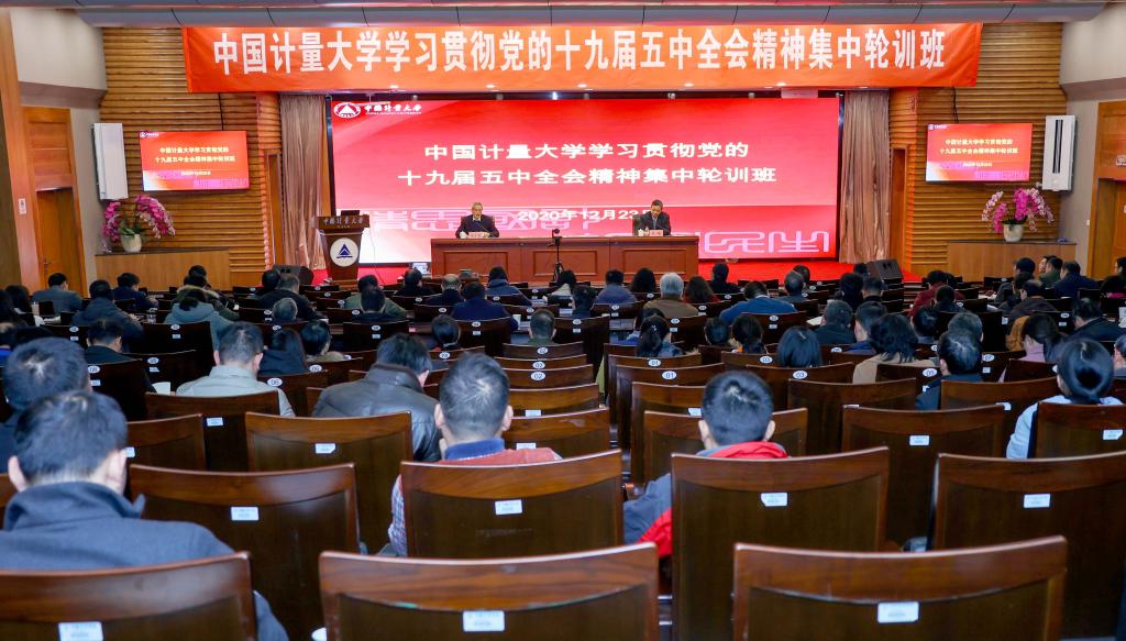12月23日,学校在闻厅二楼报告厅举办学习贯彻党的十九届五中全会精神集中轮训班,邀请省发展规划研究院院长周华富作专题报告。校党委书记张土乔在结业典礼上作重要讲话,会议由党委副书记肖刚主持,全体中层干部、组织员、教工党支部书记240余人参加了培训。