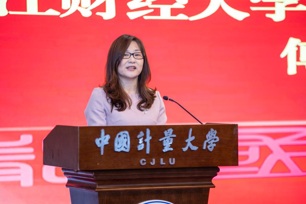 浙江省留联会副会长,浙江财经大学侨联主席、留联会会长傅黎瑛教授代表兄弟高校侨联组织致贺词。她指出,财大、量大地域相邻、情感相依、发展相向。要加强交流,永结“侨心”;要谋求合作,奏响“侨音”;要携手同行,贡献“侨力”。