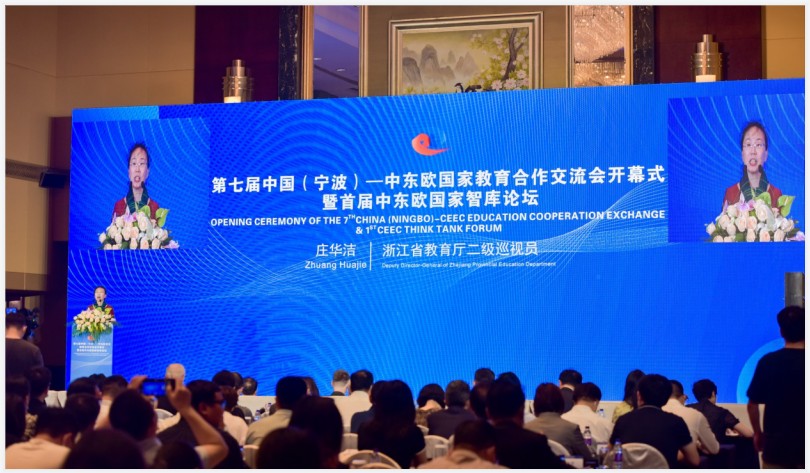6月9日, 第七届中国(宁波)—中东欧国家教育合作交流会开幕式暨首届中东欧国家智库论坛在宁波举行。本次大会由宁波市人民政府、浙江省教育厅主办,以“数字共赢 合作发展”为主题,采取线上线下相结合的方式举行,来自波兰、捷克、匈牙利、斯洛伐克、希腊等中东欧国家驻沪领事馆官员,新加坡等国外方机构代表,江苏、四川、安徽、黑龙江、河北等国内近100余所院校代表、教育界专家学者现场参会。
