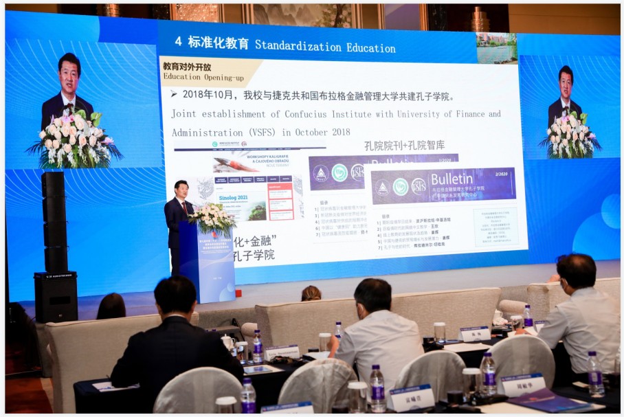 首届中东欧国家智库论坛的主题为“智库建设与数字教育”。我校宋明顺校长受邀作题为“‘一带一路’区域标准化智库建设”的主旨发言。其他三位主旨发言人为中国社会科学院欧洲研究所副所长陈新、波兰驻沪总领事马莱克·切谢尔楚克、中国—中东欧国家高校联合会中东欧方秘书处轮值单位、罗马尼亚布拉索夫特兰西瓦尼亚大学校长伊万·瓦西莱·阿布卢丹。