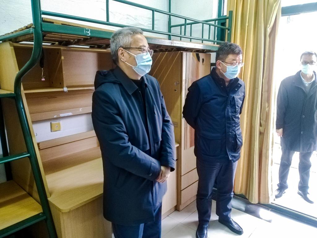12月14日下午,校党委书记、疫情防控工作领导小组组长张土乔,校长、疫情防控工作领导小组组长徐江荣,副校长、疫情防控工作领导小组常务副组长王迪钊在防控办等部门陪同下实地走访检查校园疫情防控工作。张土乔一行实地检查了校内观察点、校内重点人员核酸检测现场、校内全员核酸检测工作人员培训现场等重点场所和疫情防控物资储备情况,并详细了解目前全校教育教学、人员管理、后勤保障、重点人员排摸管理等工作。张土乔强调,要全面提高政治站位,全面从严从紧加强校园疫情防控工作,不能有一丝一毫松懈。一要清醒认识当前疫情防控形势的严峻性复杂性,坚决扛起疫情防控的政治责任,坚决落实疫情防控政策要求,坚决严守校园“外防输入”的各个关口;二要加大师生排查力度和准确度,充分利用人防技防等方式做到精准排查、精准管控,确保全面准确、不漏一人;三要细化全员核酸检测预案和应急处置演练,确保做到响应及时、组织有效、安排有序;四要全面加强学校生活服务和后勤保障工作,备齐备足必需的教学、生活和防控应急物资,确保师生教学生活服务到位、正常有序;五要加强对隔离师生和抗疫一线师生员工的关怀慰问工作,积极创造条件帮助解决面临的学习、生活及考试就业等方面的困难;六要加密疫情防控宣传教育,引导师生提升安全防护意识、大局意识,督促履行疫情防控个人责任。
