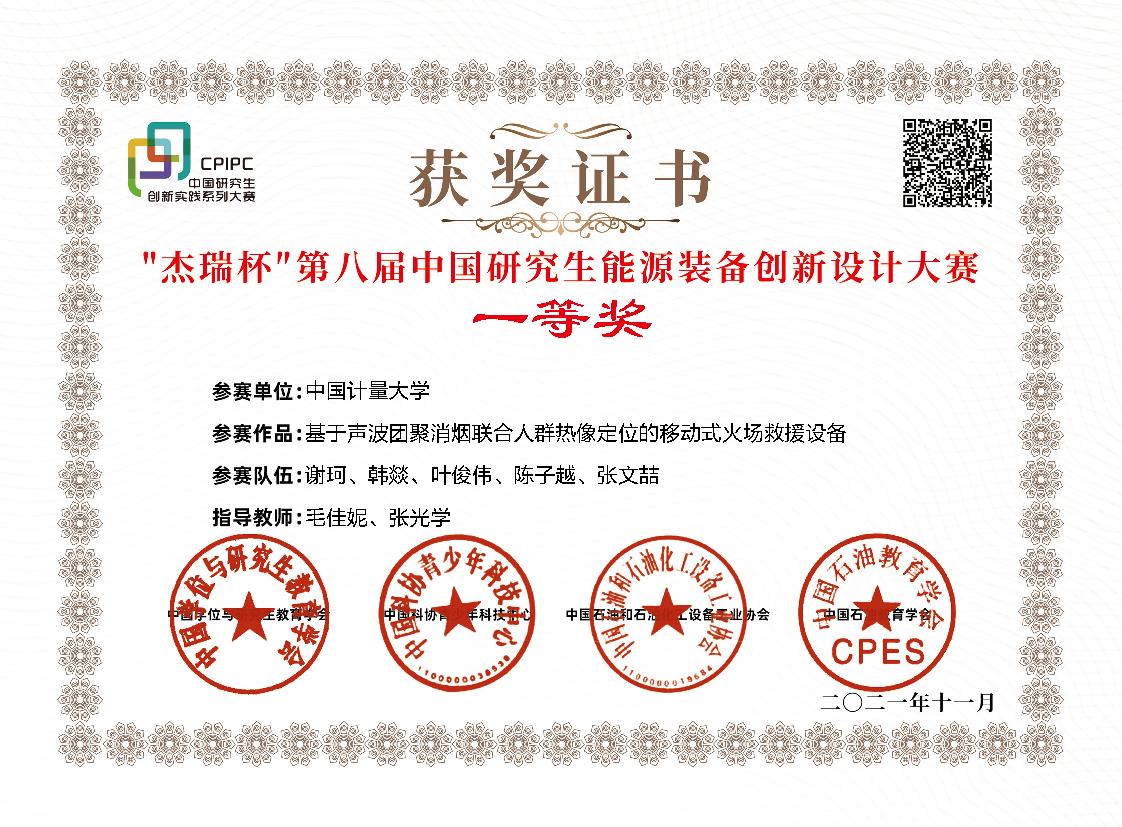 我校计测学院毛佳妮、张光学老师指导的《基于声波团聚消烟联合人群热像定位的移动式火场救援设备》(研究生谢珂、韩焱、叶俊伟、陈子越、张文喆)荣获全国一等奖,计测学院谷云庆、牟介刚老师指导的两个项目《石油输送管道留固壁面仿生微结构加工机器人研制》(研究生何晨栋、尹卓凡)、《流体装备纳米颗粒涂层表面耐腐耐磨研究》(研究生于凌志、张军军、马龙彪)荣获国家三等奖,充分展现了我校研究生科技创新的风采。