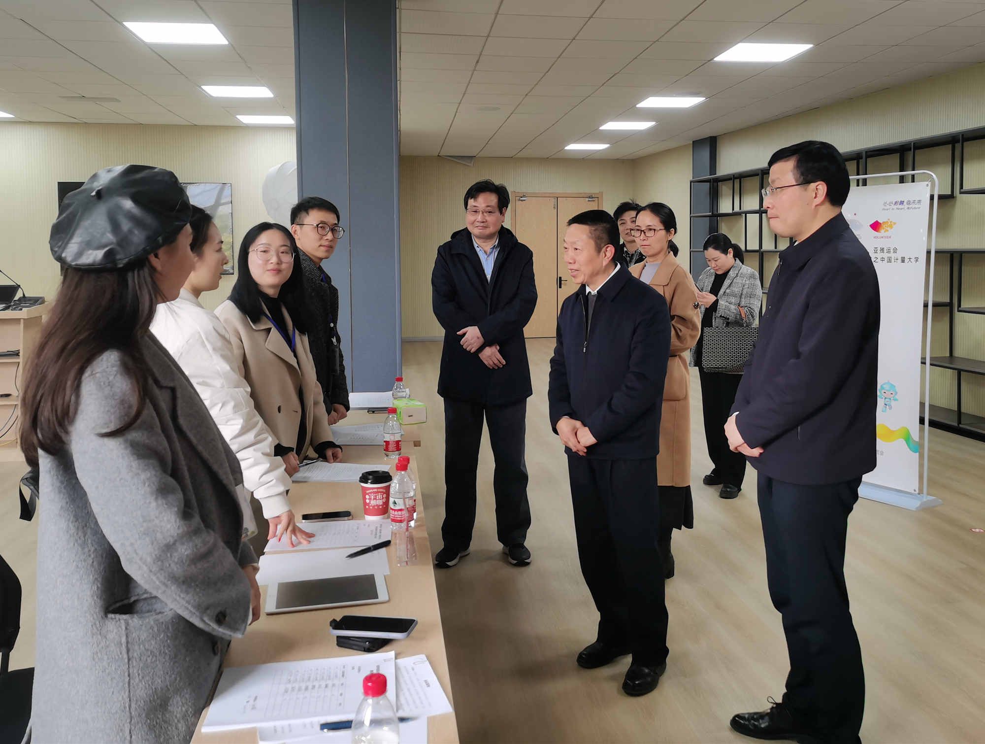 徐定安一行还先后察看了面试候考场地、面试现场,与候考志愿者、面试官等亲切交流,详细询问候考志愿者报名意向,了解志愿者面试表现,感谢面试官的辛勤付出。