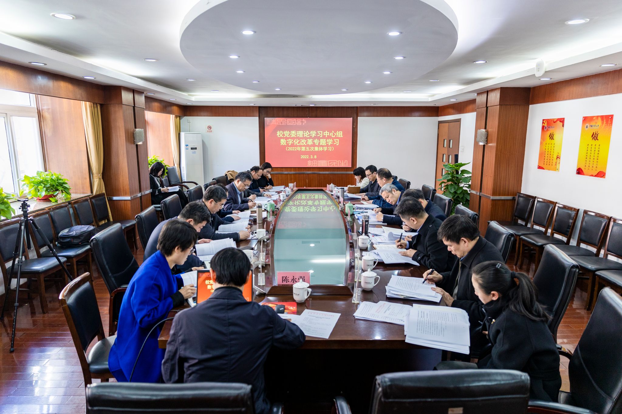 3月8日下午,校党委理论学习中心组举行“数字化改革”专题学习会,系统学习习近平总书记关于数字经济、数字中国、数字浙江的系列重要论述精神,习近平总书记《不断做强做优做大我国数字经济》重要文章精神,浙江省数字化改革大会、数字化改革例会、座谈会、推进会精神,《浙江省数字化改革标准化体系建设方案(2021-2025年)》精神、省教育厅印发的《浙江省教育领域数字化改革工作方案》。校党委书记张土乔主持会议,校党政领导班子成员参加会议。