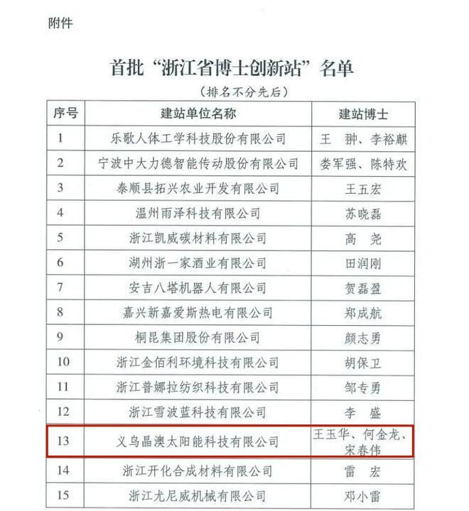 近日,浙江省科学技术协会公布全省首批“浙江省博士创新站”名单,我校现代科技学院王玉华教授牵头建站的义乌晶澳太阳能科技有限公司博士团队成功入选。