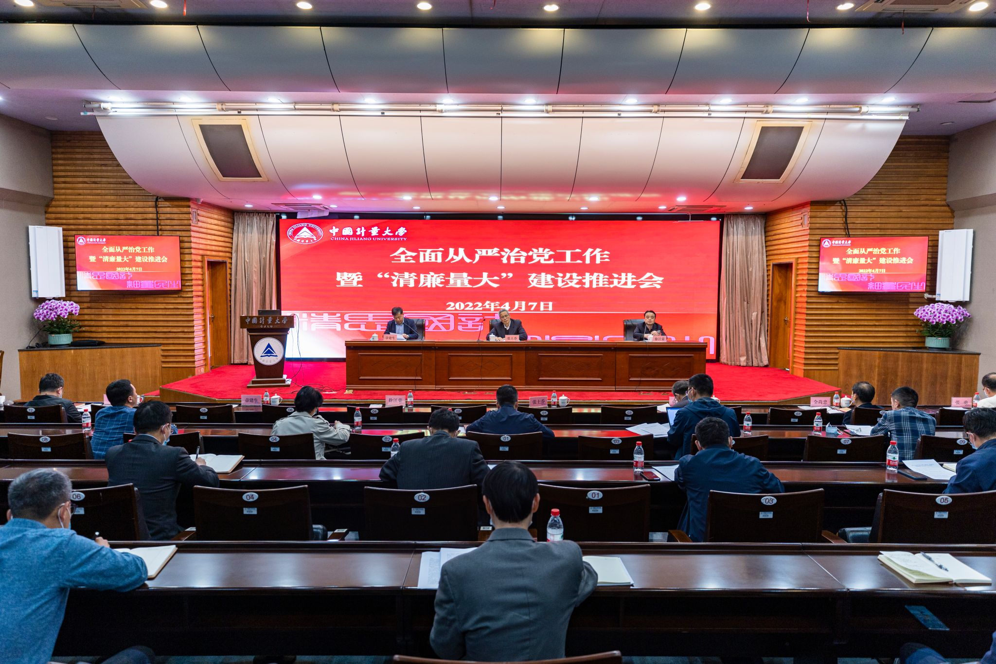 4月7日下午,学校2022年全面从严治党工作暨“清廉量大”建设推进会在闻厅二楼会议室召开。校党政领导班子成员出席会议,全体中层正职、校纪委委员、二级纪委书记参加会议。校长、党委副书记徐江荣主持会议。