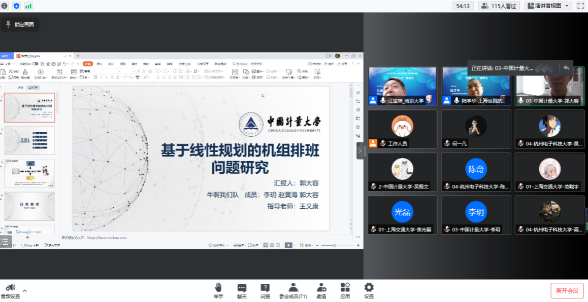 在本次颁奖会上,我校研究生吴楷文、陈晨煜、高琪组成的参赛团队(F题全国第2名)受邀参加本次“数模之星”答辩会,与上海交通大学、华中科技大学、东南大学等高校的参赛团队同台竞技,最终斩获“数模之星“提名奖,并获1万元奖金。他们还与李玥、赵黄海、郭大容组成的参赛团队(F题全国前5名)受邀参加了赛题汇报交流。