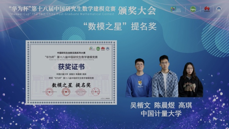 近日,由华南理工大学承办的“华为杯”第十八届中国研究生数学建模竞赛颁奖大会落下帷幕,大赛相关单位嘉宾、各参赛单位教师代表、获奖研究生代表以及师生观众在云端共赴盛会,精彩纷呈。我校王义康、刘学艺、蒋伟峰3位指导老师及9名全国一等奖获奖者共12人应邀在线出席。