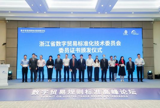 5月31日下午,在由浙江省商务厅、浙江省市场监督管理局、之江实验室和我校联合主办的浙江数字贸易规则标准高峰论坛上,浙江省数字贸易标准化技术委员会正式揭牌成立。
