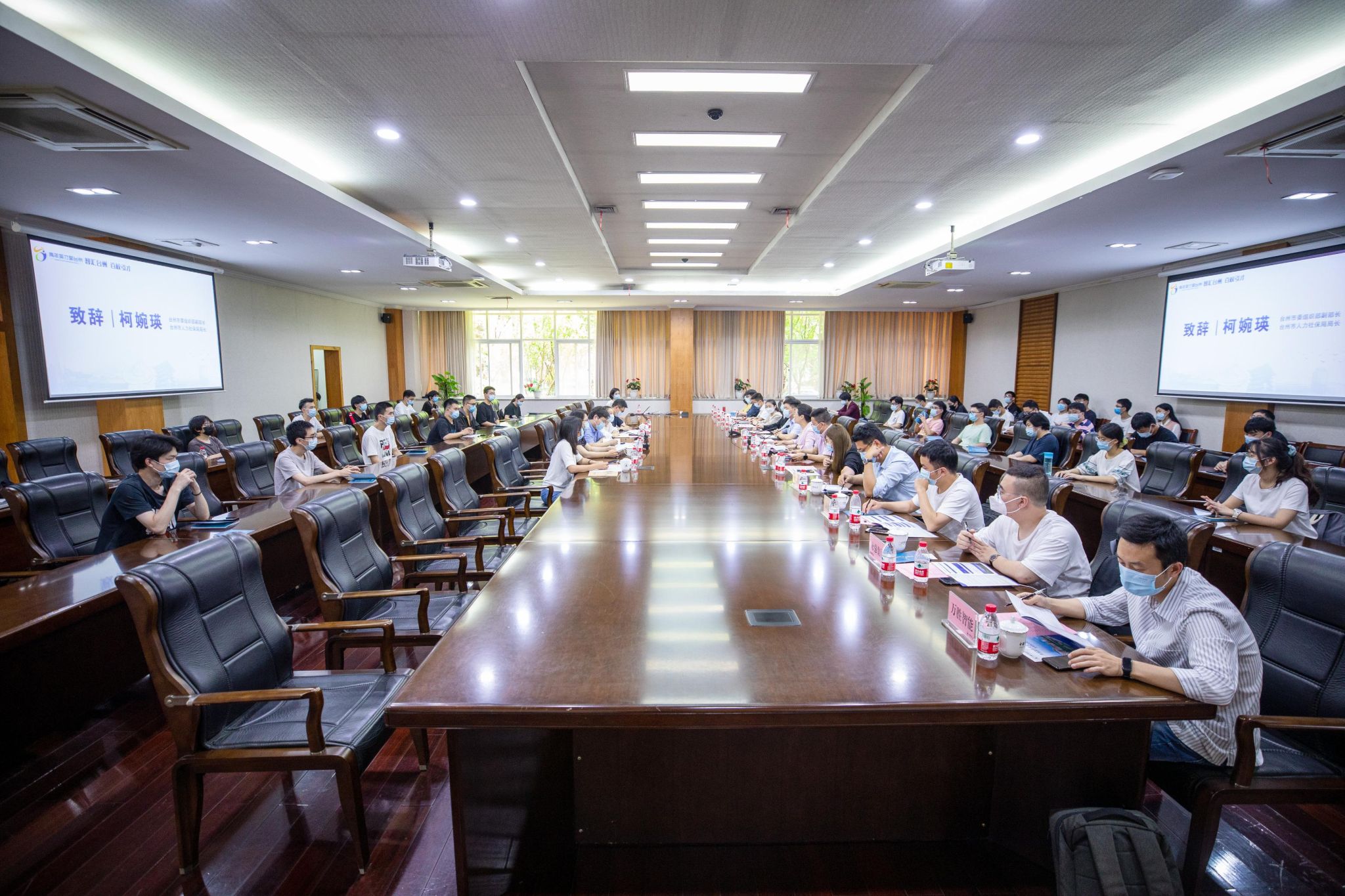 5月31日下午13:30,我校与台州市的2022“智汇台州·百校引才”校园招聘活动启动仪式在闻厅一楼会议室举行。台州市委组织部副部长、人力社保局局长柯婉瑛,台州市人力社保局党组成员、副局长陈敦庸,台州市人才服务中心主任赵继光,台州市人才服务中心副主任张柯参加会议。校党委副书记程刚出席会议并致辞,组织部、学生处、机电工程学院有关负责人参加活动。