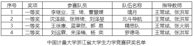 近日,由浙江省教育厅主办的2022年第十届浙江省大学生力学竞赛在温州大学落下帷幕。我校4支参赛队发挥出色,荣获一等奖3项(包揽冠亚军)、二等奖1项。