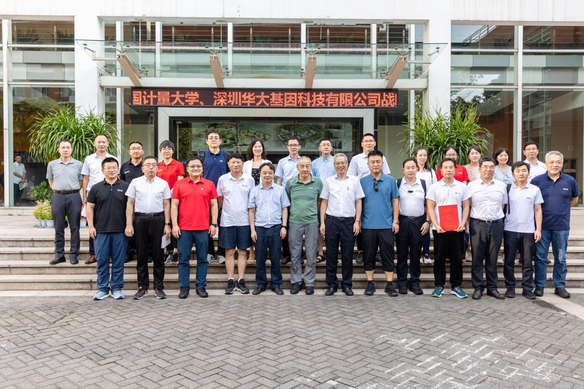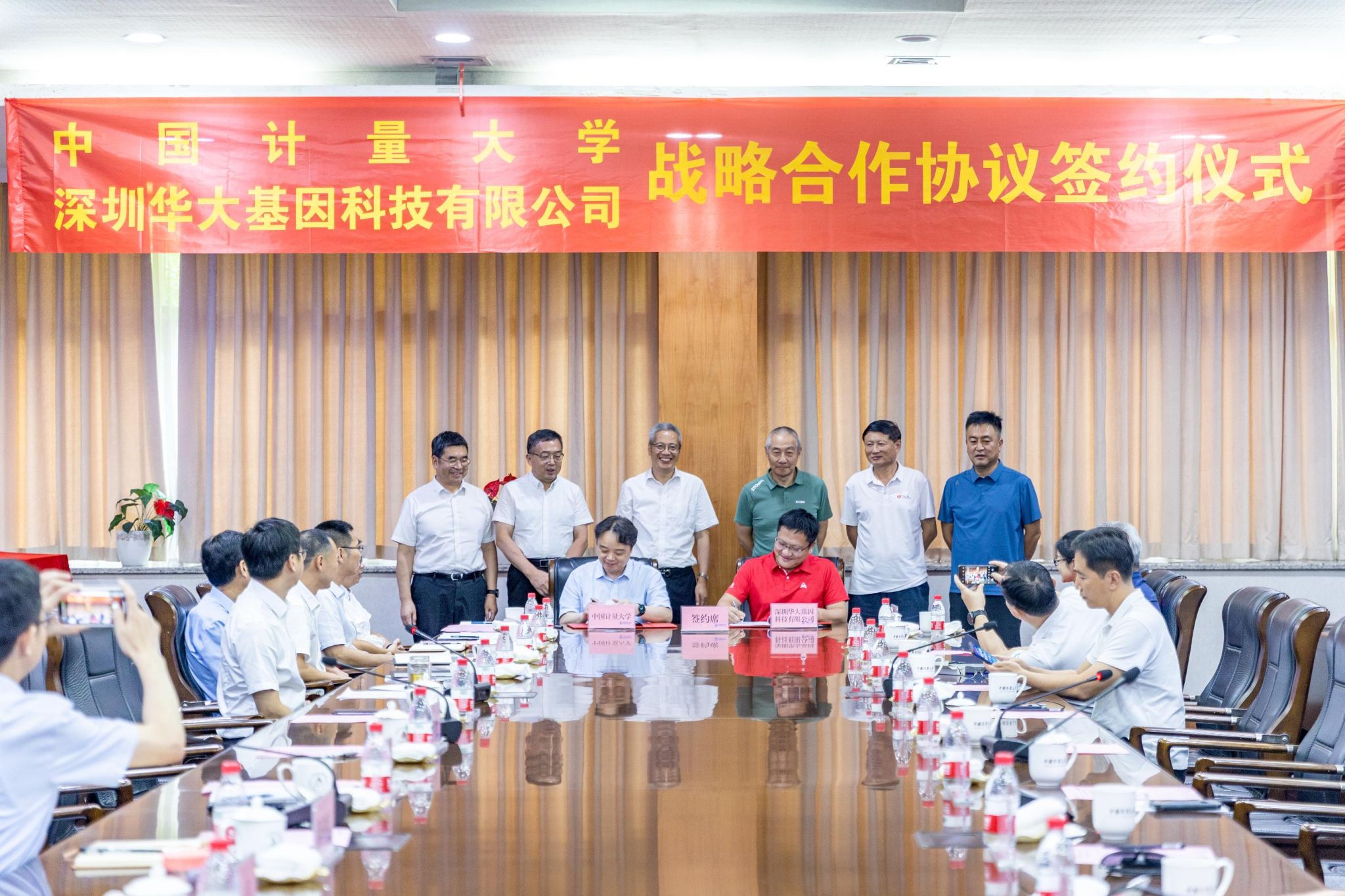 7月30日下午,我校与深圳华大基因科技有限公司战略合作协议签约仪式在闻厅一楼会议室举行。华大集团联合创始人、董事长汪建,华大集团联合创始人、监事长刘斯奇以及华大集团高管一行18人参加签约仪式。校党委书记张土乔、校长徐江荣、副校长俞晓平出席签约仪式,副校长葛洪良主持仪式。学校相关职能部门和学院负责人、生物检测与仪器团队的教师代表参加签约仪式。