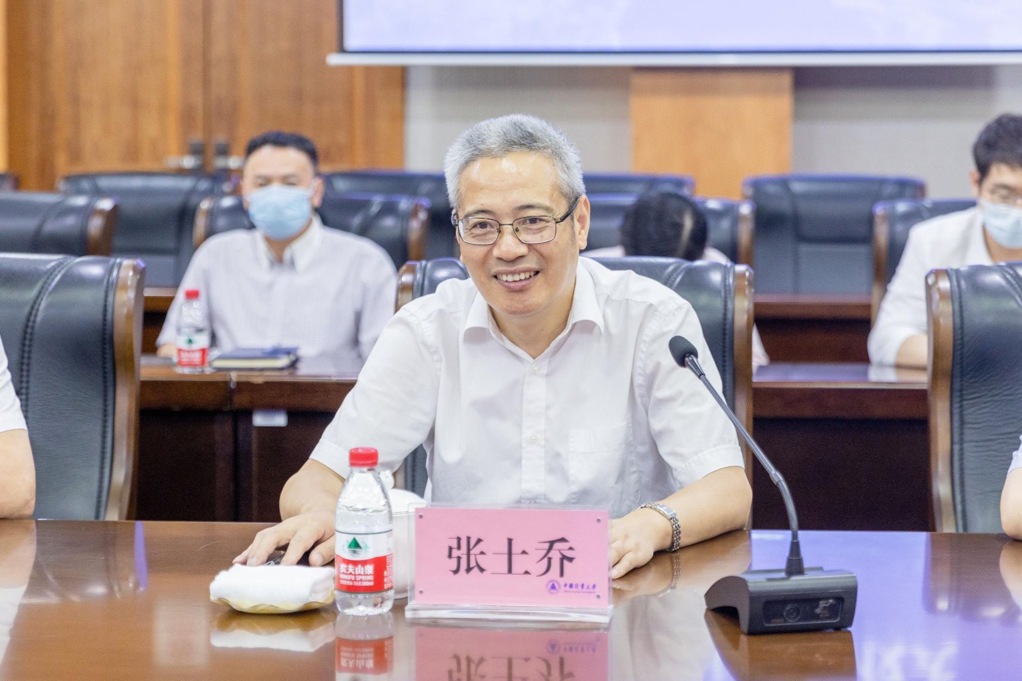 张土乔代表学校向华大集团董事长汪建一行的到来表示欢迎,并向客人介绍了学校的办学历程、办学理念和办学特色。他强调,学校始终牢记习近平同志2004年莅校视察时的重要指示精神,紧紧抓住“老本行”,秉持“精思国计、细量民生”的校训,以特色教育服务经济社会发展。他向客人介绍了学校在生命科学领域开展的教学、研究、人才培养等情况。他表示,加强生命科学领域的科学研究和人才培养对于推进健康中国建设具有十分重要的意义,希望双方发挥各自优势,加强合作对接,推进项目落地,为实现“造福人类、服务社会”的价值追求贡献双方的力量。