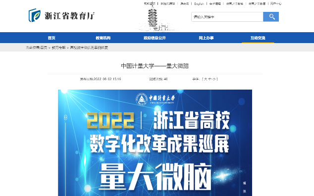 近日,浙江省教育厅开展高校数字化改革工作成果巡展活动,经过专家评审遴选优秀成果,我校“量大微脑”案例成功入选并在教育厅官方网站线上展出。“量大微脑”成果案例充分展示了我校“数智量大,唯实唯先”的最新改革成果,体现了学校数字化改革新要求:深化大数据应用,推进信息系统全面整合,实现数据搜集、完善数据标准,促进数据有效分享。