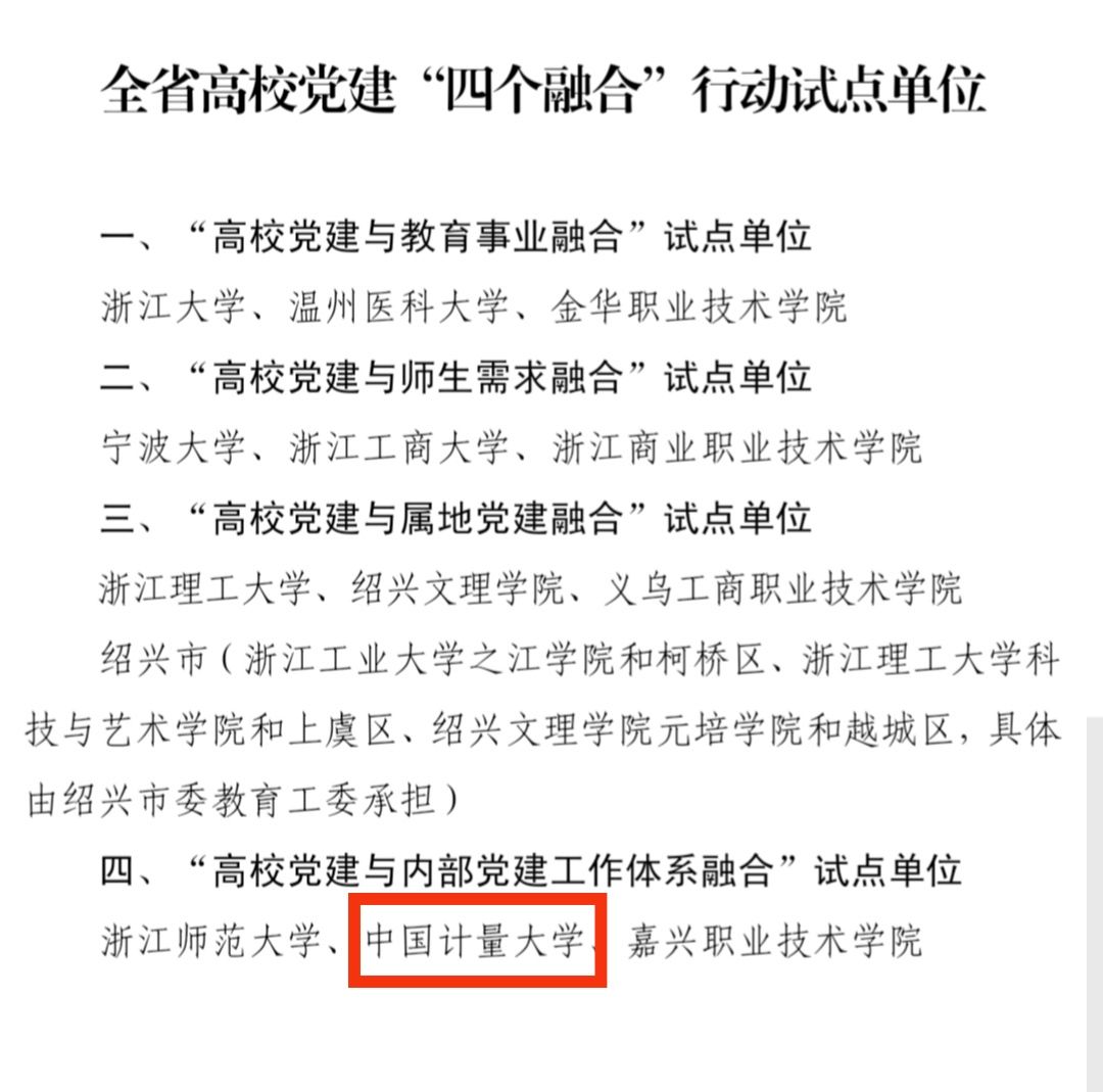 9月15日,浙江省委教育工委下发《关于确定高校党建“四个融合”行动试点单位的通知》,我校成功入选全省高校党建四个融合行动试点单位,并成为“高校党建与内部党建工作体系融合”3家试点单位之一。