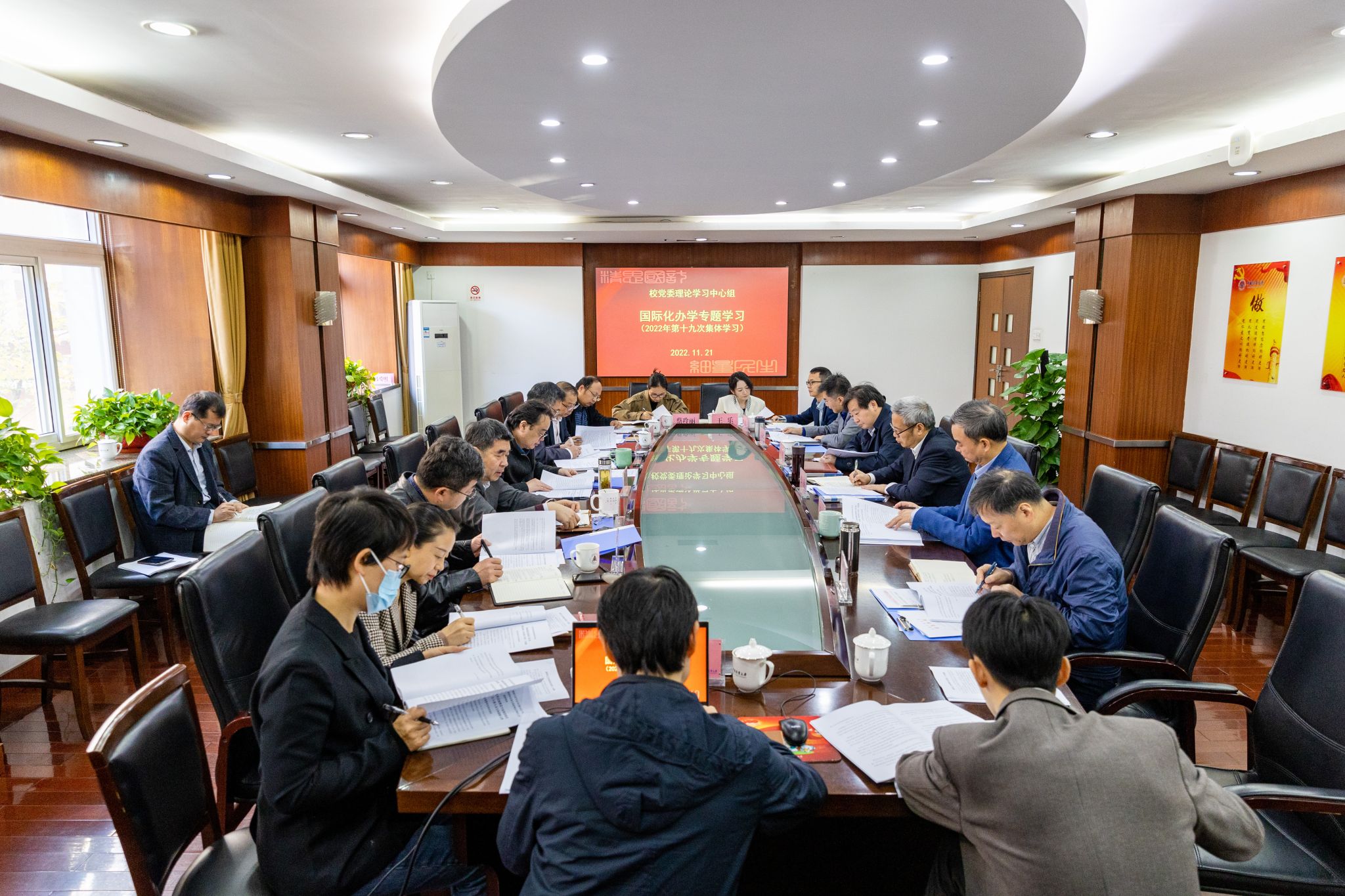 11月21日上午,304am永利集团官网党委理论学习中心组举行“国际化办学”专题学习会。深入学习习近平总书记关于教育对外开放的重要论述,认真学习习近平主席同美国总统拜登巴厘岛会晤精神、习近平主席在二十国集团领导人第十七次峰会和亚太经合组织第二十九次领导人非正式会议上的重要讲话精神、副省长王文序来校宣讲党的二十大精神报告会精神等。校党委书记张土乔主持会议,校党政领导班子成员参加会议。