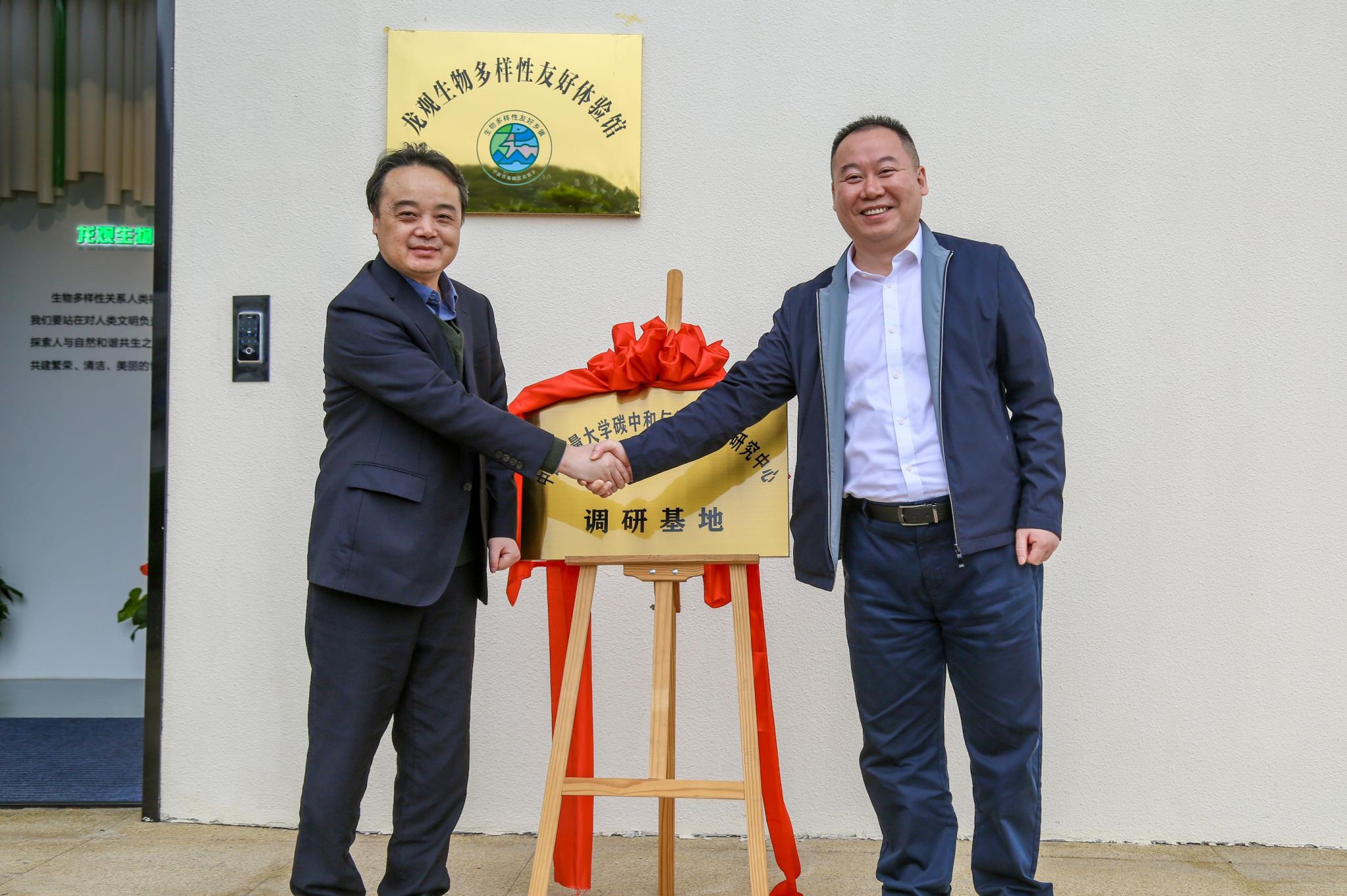 仪式前,徐江荣和黄健为304am永利集团官网碳中和与绿色发展研究中心调研基地揭牌,并参观了生物多样性友好体验馆和零碳共富观岭六村展示厅,考察了解海曙区生物多样性保护和零碳光伏乡镇建设工作。