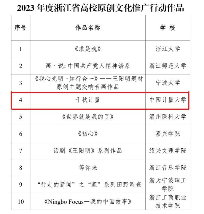 近日,浙江省教育厅公布了浙江省2023 年度高校思想政治工作质量提升综合改革与精品建设项目立项结果,我校《千秋我院》项目入选2023年度浙江省高校原创文化推广行动作品并获批向教育部推荐。