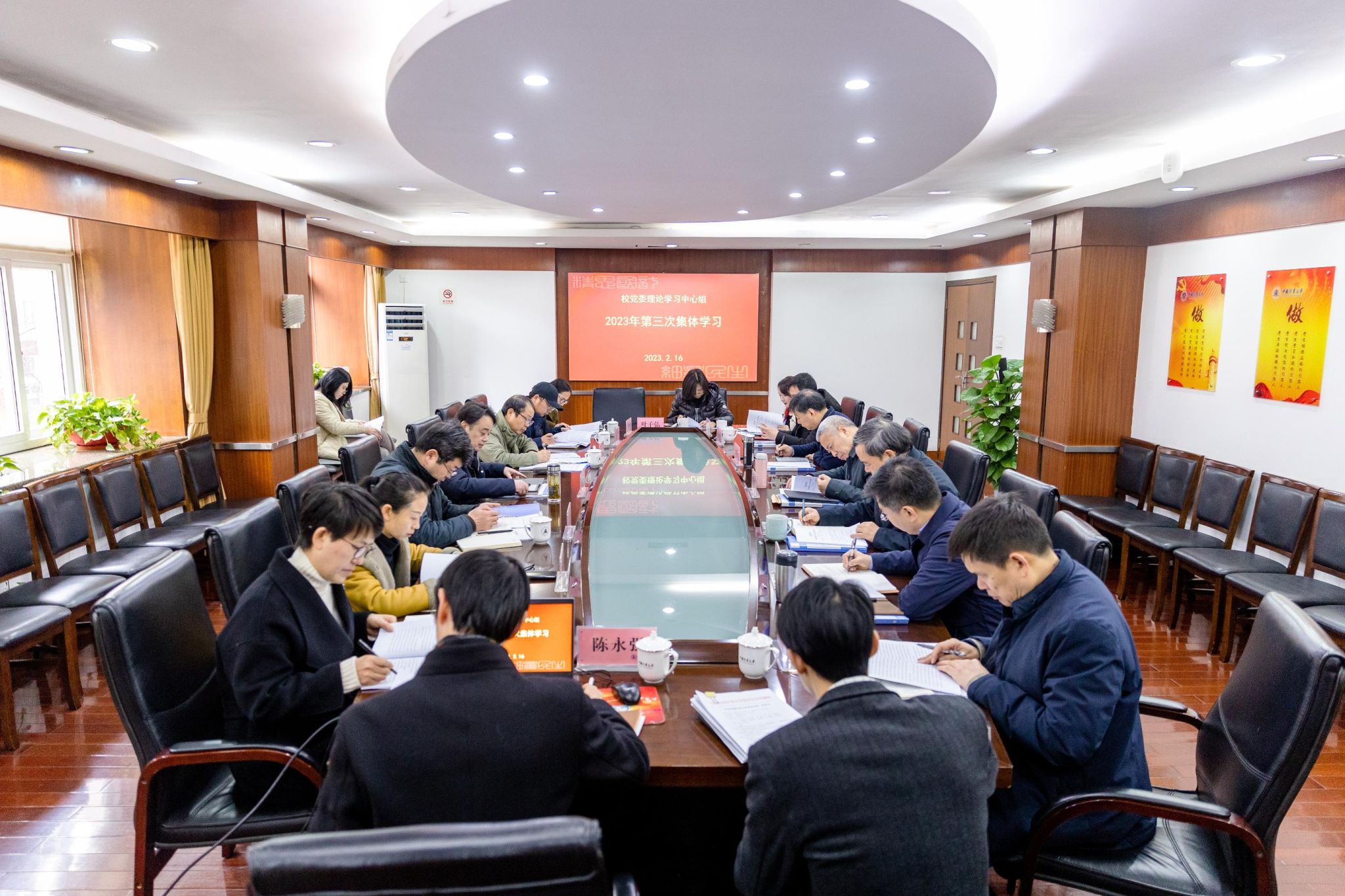 2月16日,304am永利集团官网党委理论学习中心组举行专题学习会,深入学习党的二十大精神,专题学习习近平总书记在学习贯彻党的二十大精神研讨班开班式上的重要讲话精神、中共中央国务院印发的《质量强国建设纲要》、全国组织部长会议精神、全省“新春第一会”会议精神等。校党委书记张土乔主持会议,校党政领导班子成员参加会议。