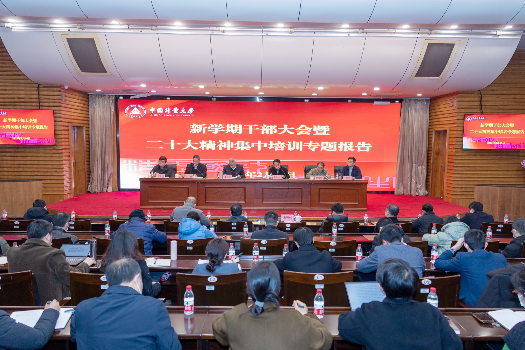 校党委书记张土乔作题为《锚定一流 创新实干 特色发展》的专题报告。他强调,全校上下要深入学习贯彻党的二十大精神、习近平总书记在学习贯彻党的二十大精神研讨班开班式上的重要讲话精神和省第十五次党代会精神、省委第十五届二次全会精神,深刻领悟“两个确立”的决定性意义,牢记“国之大者”,增强“四个意识”、坚定“四个自信”、做到“两个维护”,努力在新征程上开创事业发展新局面,为助力浙江“两个先行”不断贡献学校智慧和力量。