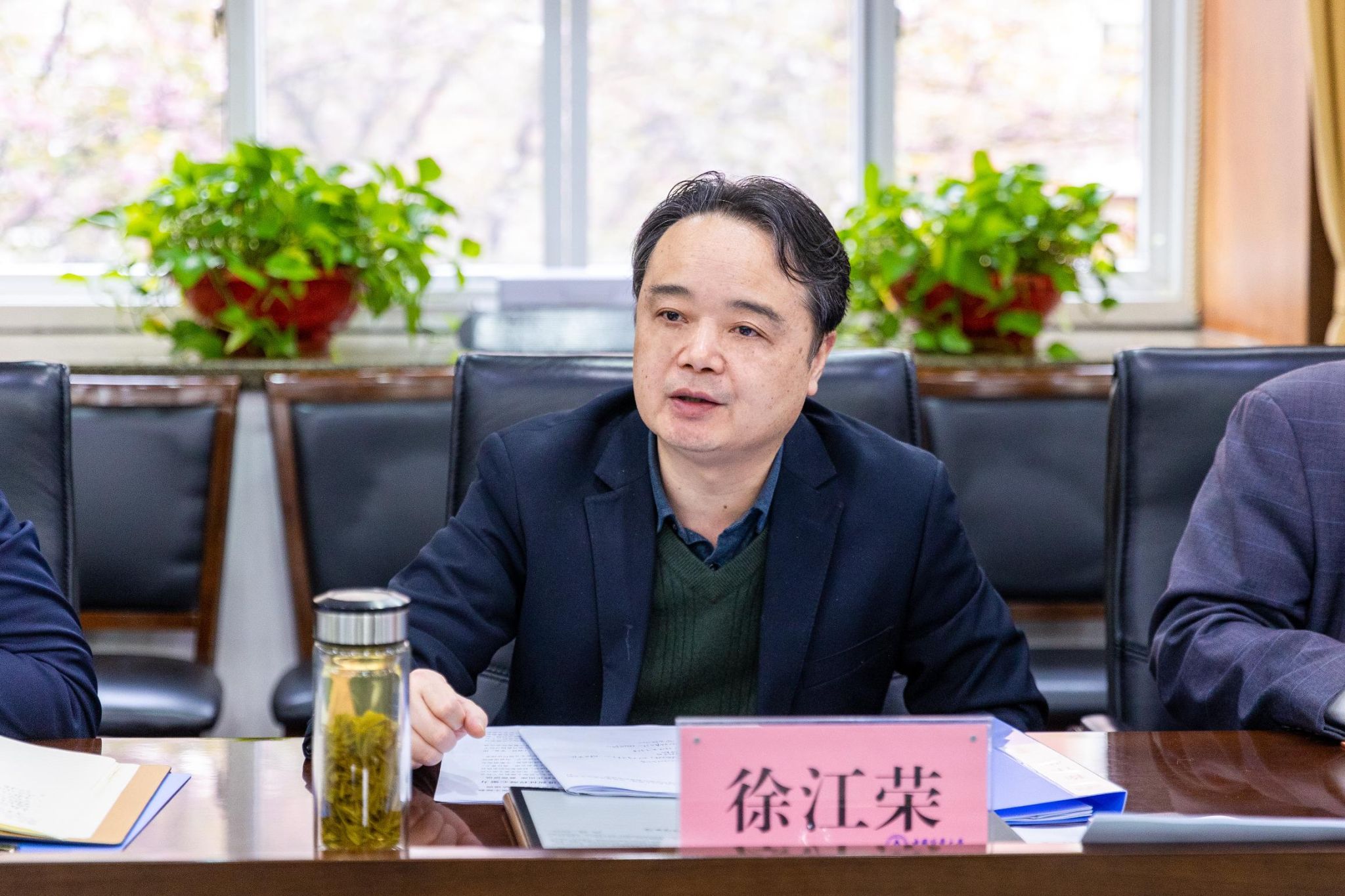 校长徐江荣在主题交流发言中指出,习近平总书记的重要讲话高屋建瓴、视野宏阔、思想深邃、内涵丰富,具有很强的政治性、思想性、指导性,为全党开展主题教育提供了根本遵循,是一篇马克思主义纲领性文献。全校党员干部要坚持从习近平新时代中国特色社会主义思想中,找方向、找思路、找方法,全面系统掌握这一思想的基本观点、科学体系,把握好这一思想的世界观、方法论,坚持好、运用好贯穿其中的立场观点方法。要围绕主题教育“学思想、强党性、重实践、建新功”的总要求,准确理解把握学科建设的内涵,发挥学科建设龙头作用,统筹推进学校科学研究、社会服务、人才培养等各项工作;要坚持问题导向开展调查研究,解决师生关心的重点、难点问题,提振师生发展信心,增强师生获得感、幸福感、安全感;要进一步拓展办学资源,优化办学资源,推动学校快速发展;要深入推进全面从严治党,做到廉洁奉公,教育引导广大党员、干部增强纪律意识、规矩意识,营造良好政治生态。