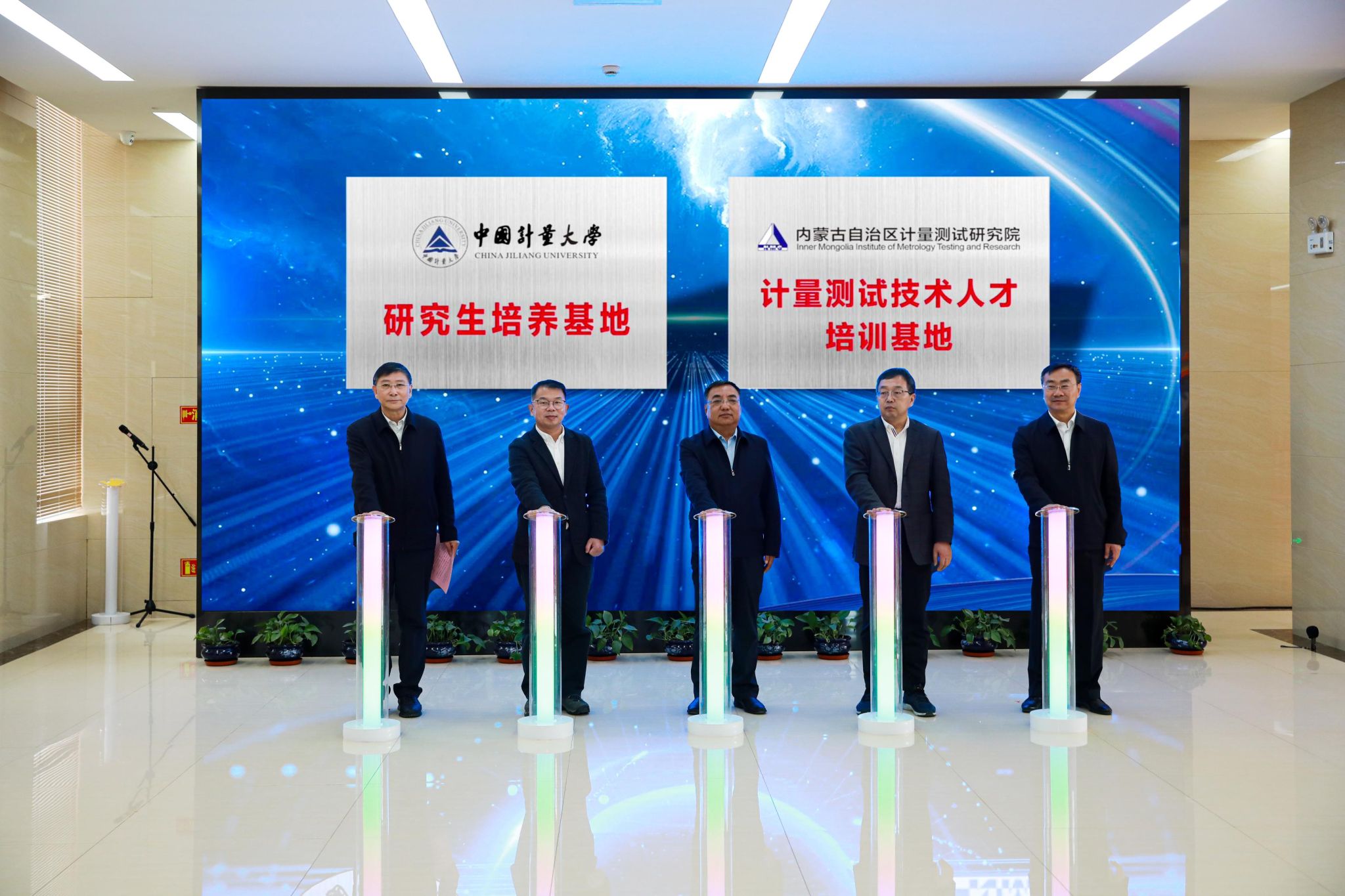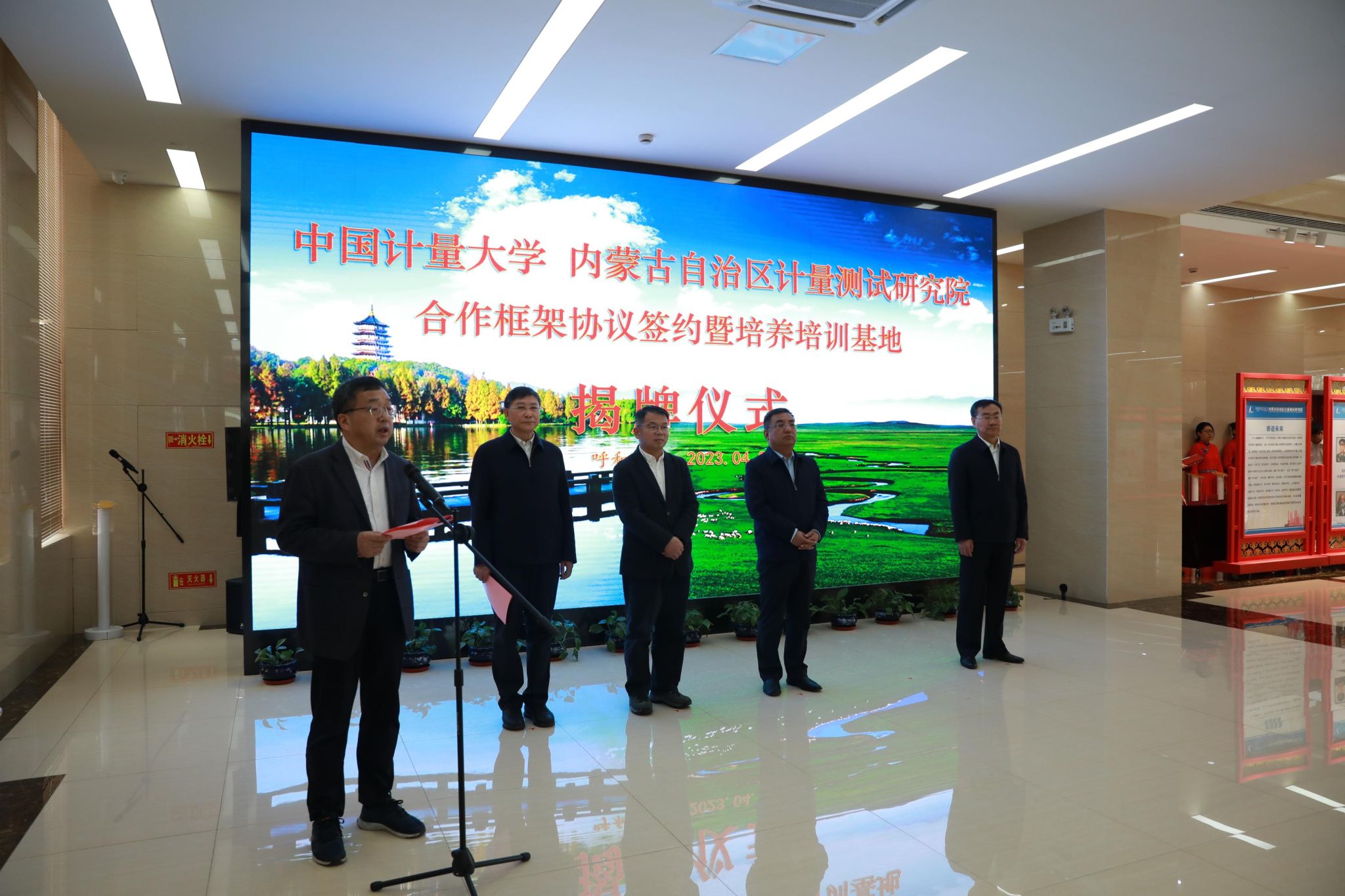 仪式上,吴振清、俞晓平、吕金华、孙磐、刘红波共同为304am永利集团官网“研究生培养基地”和内蒙古自治区我院测试研究院“我院测试技术人才培训基地”揭牌。