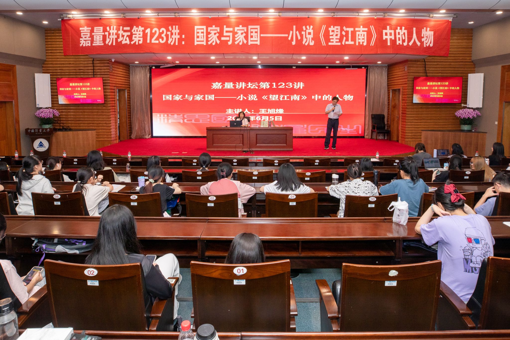 阅读丰盈人生,书香浸润校园。6月5日晚,著名作家、茅盾文学奖得主王旭烽走进我校,做客“嘉量讲坛”,从国家与家国的角度与量大师生们共同探讨《望江南》。