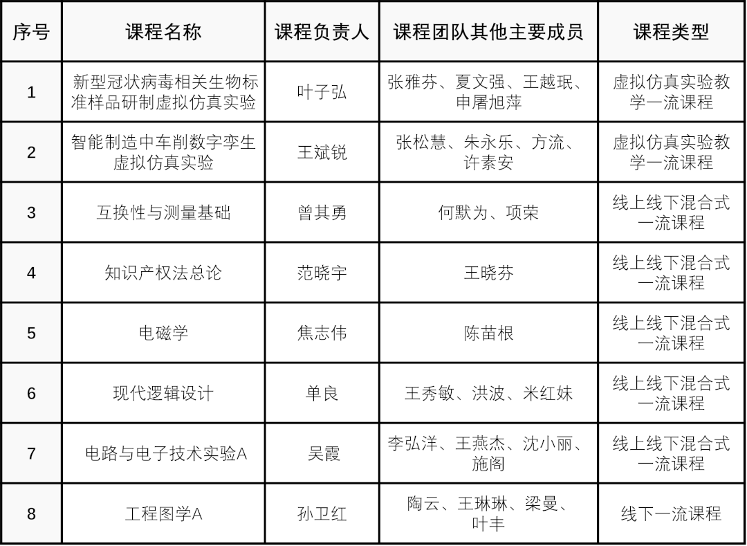 近日,教育部印发《教育部关于公布第二批国家级一流本科课程认定结果的通知》(教高函〔2023〕7号),我校有8门课程获得国家级一流本科课程认定。其中,虚拟仿真实验教学一流课程2门、线上线下混合式一流课程5门、线下一流课程1门。