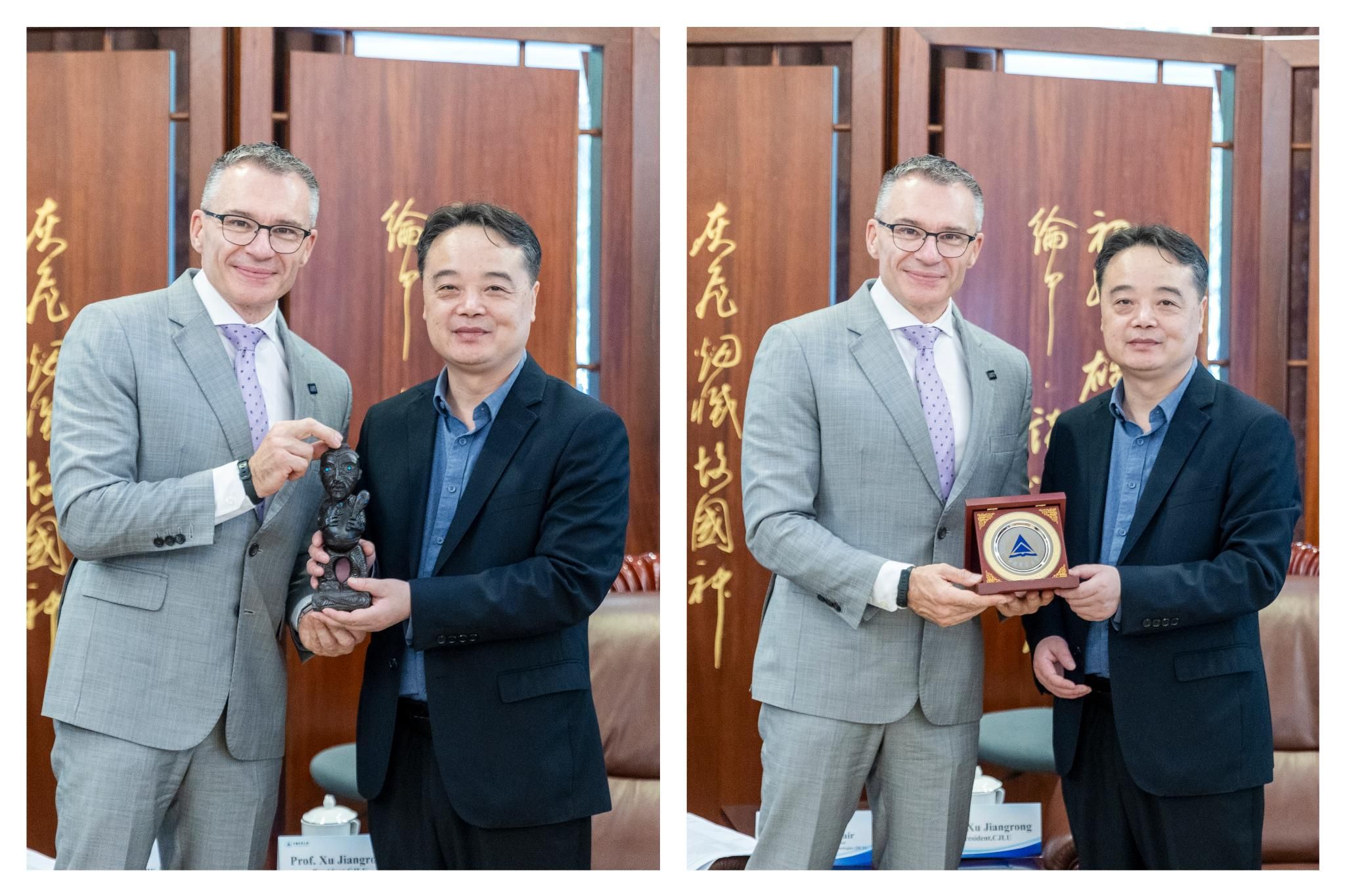 会谈前,徐江荣在闻厅一楼接待厅亲切会见客人并互赠礼品。