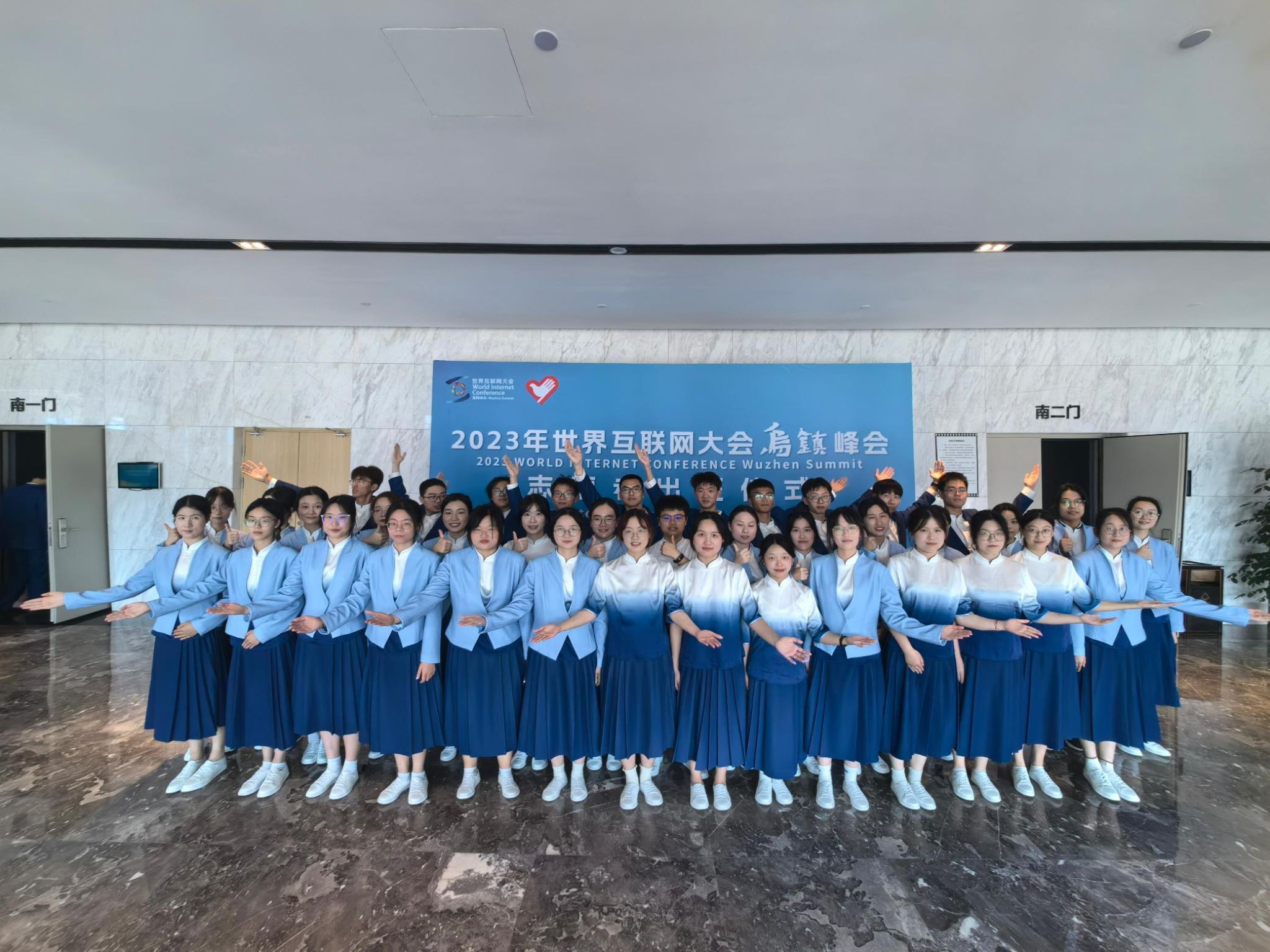 本次大会,807名志愿者“小梧桐”在乌镇集结,用“青春血液”向乌镇峰会注入了别样的光彩。我校共派出教师1名、学生志愿者39名,坚守乌镇西栅景区各个点位,不畏风雨严寒、风吹日晒,用真诚的微笑、积极的心态、认真的态度和专业的服务完满完成了本次大会景区道路引导服务工作。