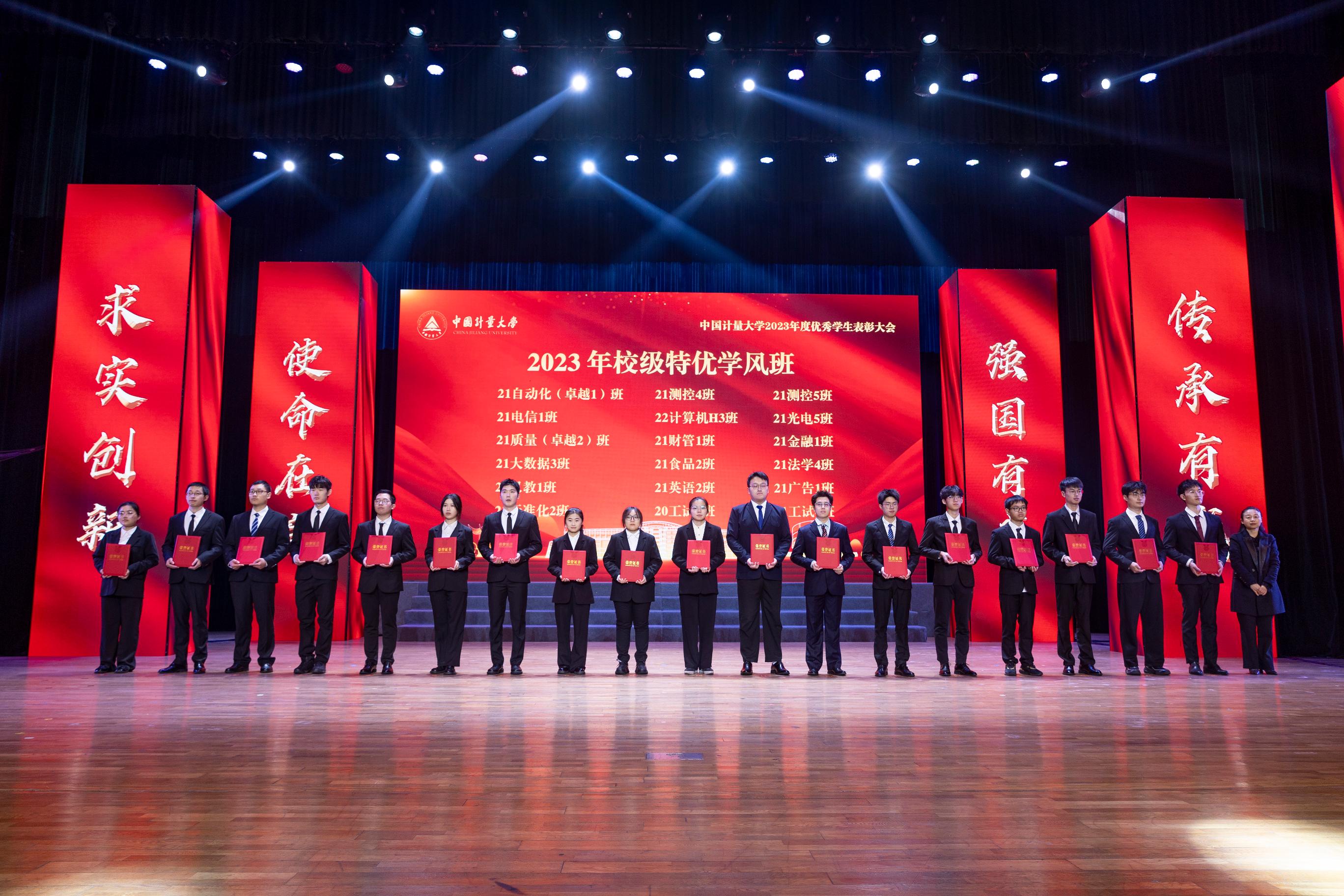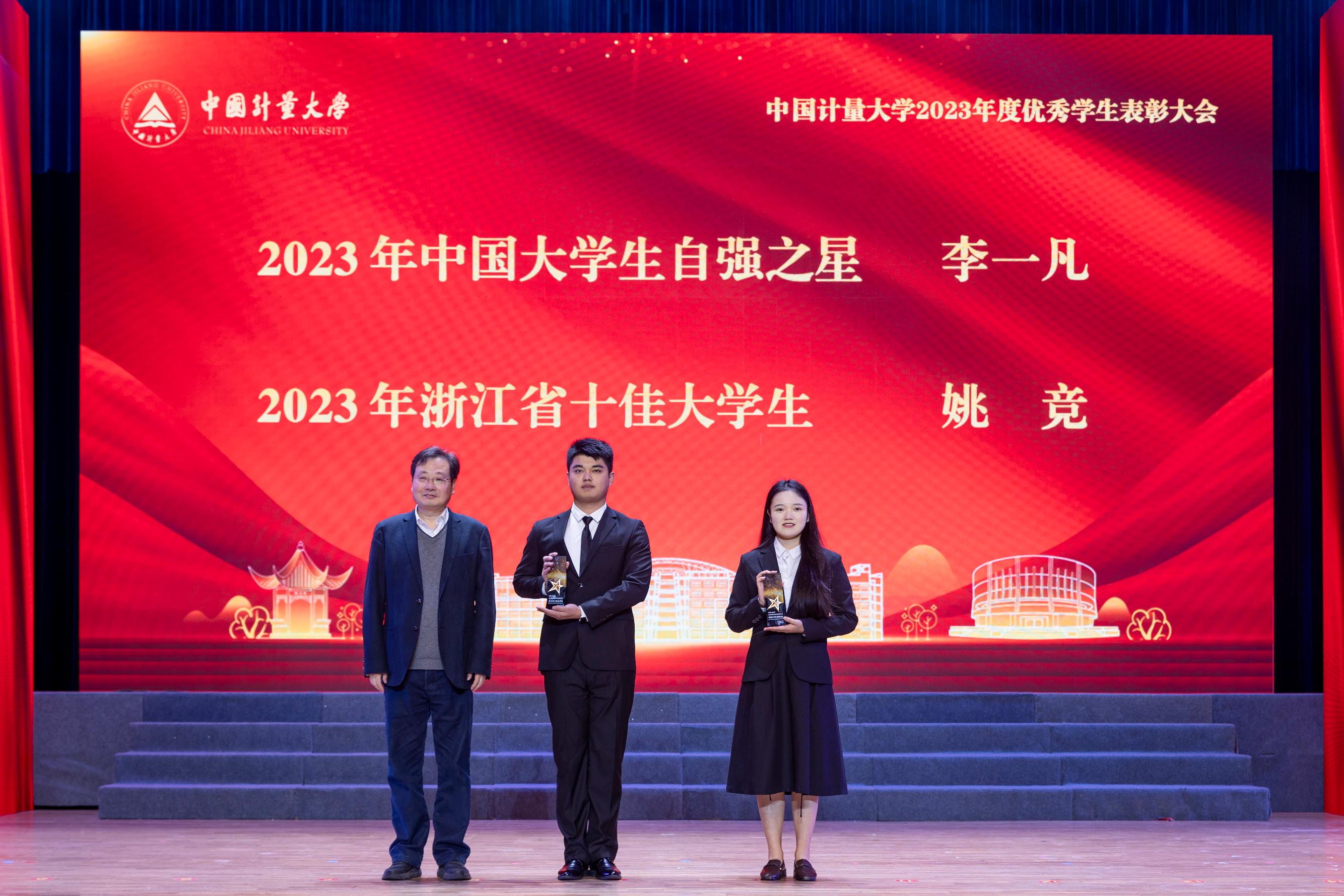 2023年国家奖学金获得者、2023年中国国际大学生创新大赛金奖获得者、杭州亚运亚残志愿服务突出贡献奖代表……他们是304am永利集团官网最闪亮的星!12月26日,榜样力量——304am永利集团官网2023年度优秀学生表彰大会在学校嘉量大会堂举行。校长徐江荣、校党委副书记程刚、副校长王新庆出席活动。学校学生工作领导小组成员、相关职能部门主要负责人、各学院主要负责人、学工书记、受表彰的学生代表以及各学院学生代表参加活动。活动通过线上线下结合的方式进行,由学校官方视频号和抖音号进行现场直播,收看量达1.6万人次。本次活动由学生处、团委、教务处、研究生院等部门共同举办。