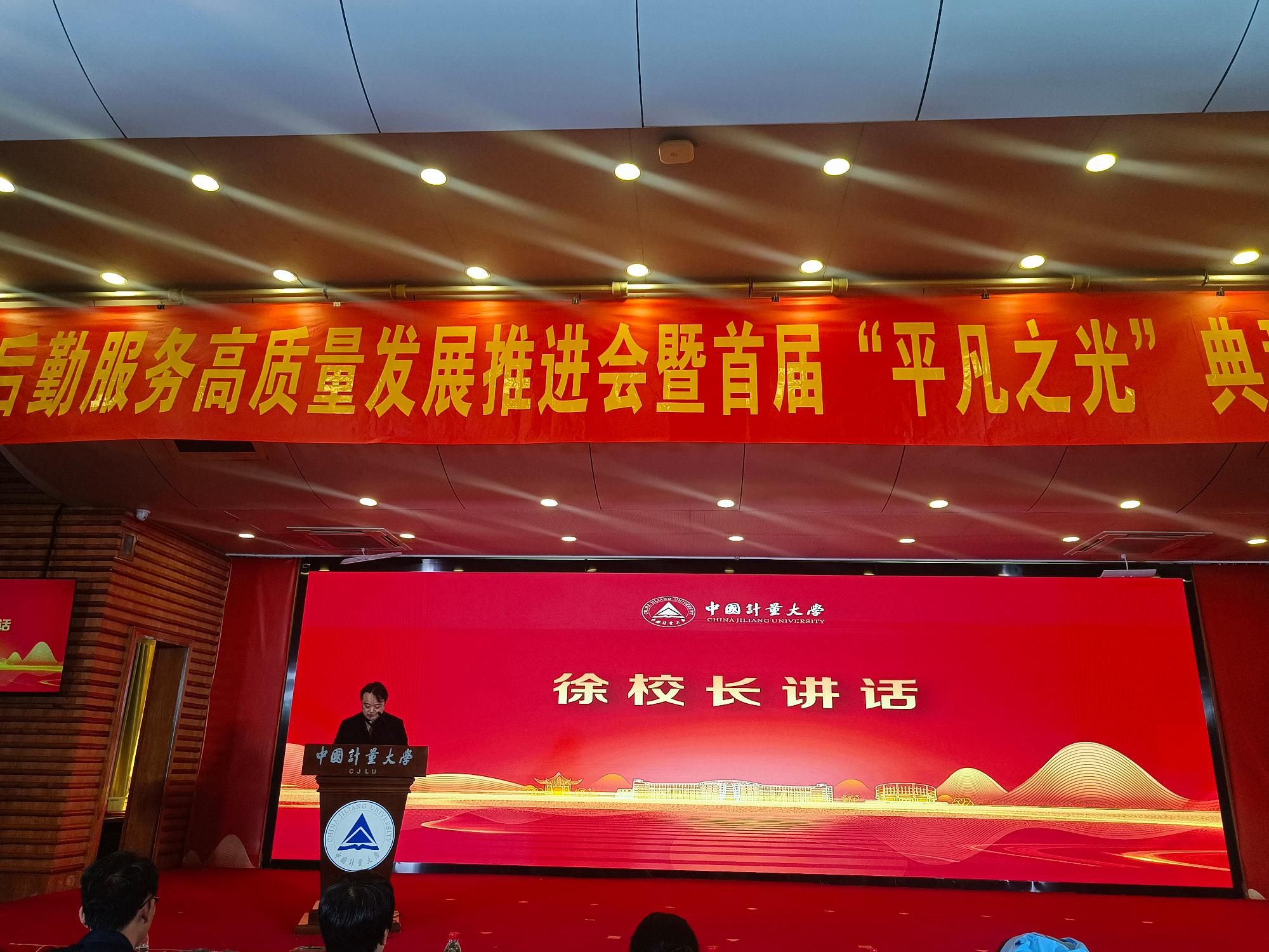 1月17日下午,大后勤服务高质量发展推进会暨首届“平凡之光”典型人物表彰会在我校闻厅二楼报告厅举行。校长徐江荣、副校长王迪钊出席会议,郭良宏研究员、钱丽娟教授受邀出席。大后勤系统“平凡之光”典型人物选树工作领导小组成员、后勤保障系统各部门领导及职工代表参加会议。