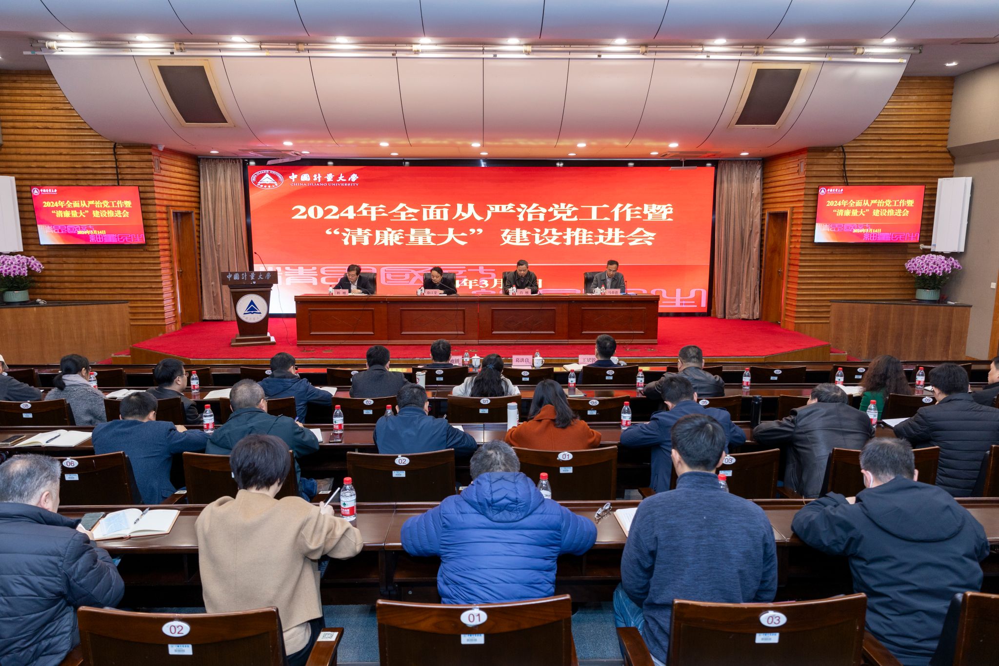 3月14日下午,学校2024年全面从严治党工作暨“清廉量大”建设推进会在闻厅二楼报告厅召开。校党政领导班子成员出席会议,校纪委委员、全体中层干部参加会议。党委副书记肖刚主持会议。