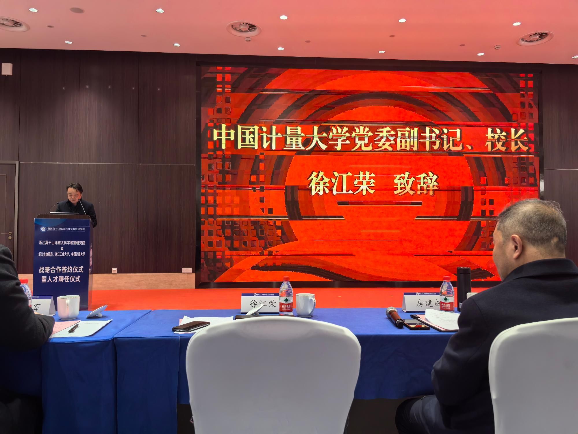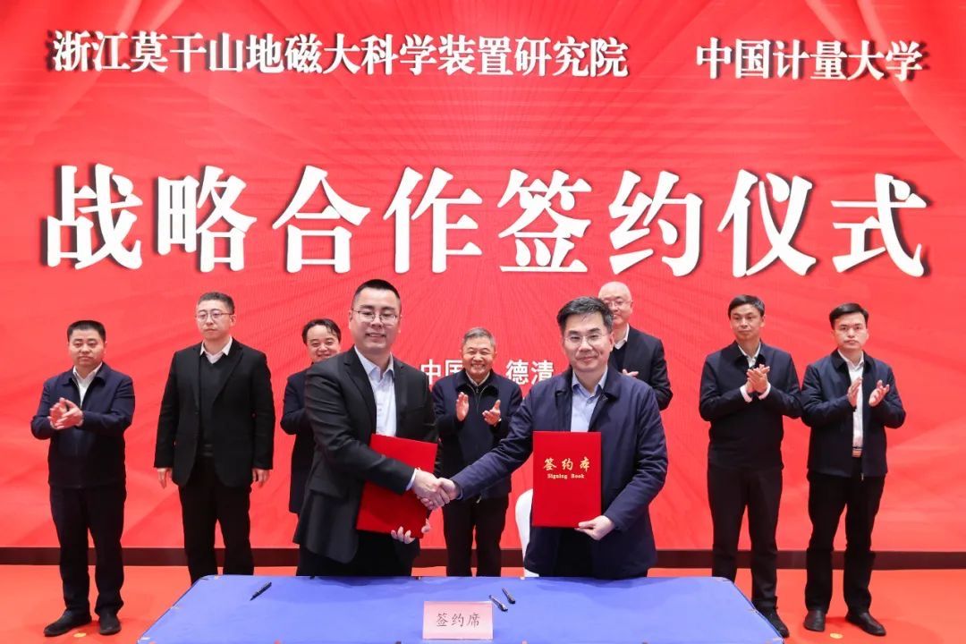 签约仪式上,王斌锐代表我校与浙江莫干山地磁大科学装置研究院签署《战略合作协议》。