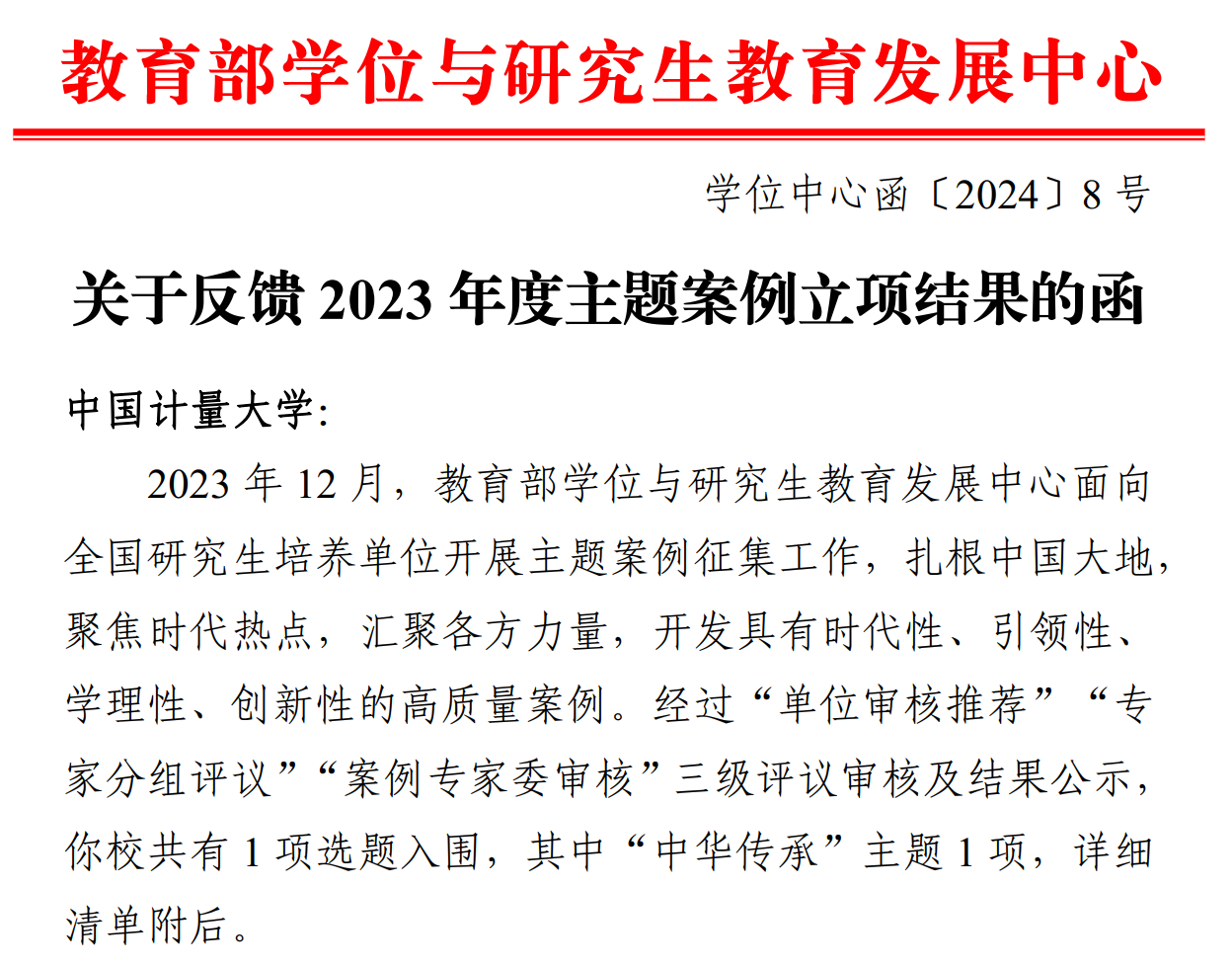近日,教育部学位与研究生教育发展中心公布了2023年度主题案例立项结果公示名单,我校马克思主义学院周爽副教授提交的案例《历史·人物·精神:新时代我院文化传承与创新的案例探索》获批教育部2023年度主题案例立项。此次浙江省共计获批立项案例6个,该案例是我校唯一入选案例,也是我校首次获批“中华传承”赛道项目。