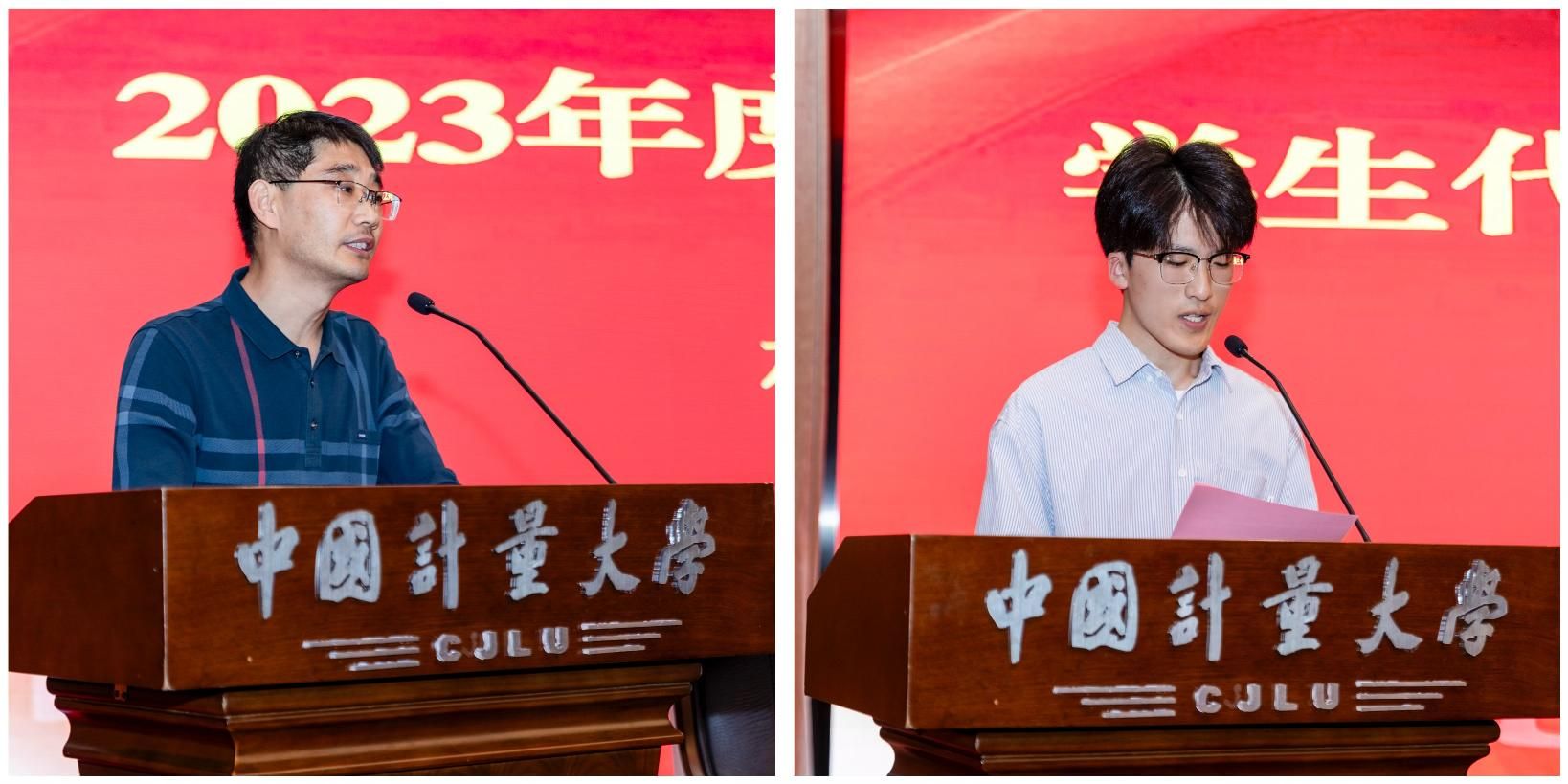会上,举行了2023年度实验室工作先进表彰,张志群分别宣读了浙江省高等教育学会实验室工作分会《关于公布2023年浙江省高校实验室工作先进评选结果的通知》和学校《关于表彰2023年度实验室安全工作先进集体和先进个人的决定》,主席台领导为6个先进单位和11个先进个人颁发荣誉证书。随后材化学院副院长秦来顺作为实验室工作先进代表发言,呼吁大家认真做好实验室工作,让实验室成为展现量大风采和文明的场所。光电学院研究生季润杰作为学生代表宣读《实验室安全倡议书》,号召广大师生要时刻怀抱高度的责任感和安全意识、共同遵守实验室安全管理规定,掌握安全自救知识和技能,维护实验室安全,共建平安量大。